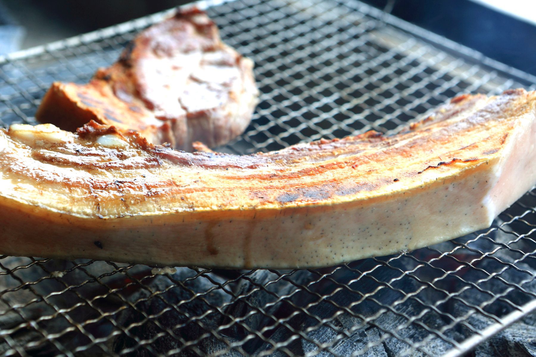 2.5cm~3cm 두께로 매일 수작업으로 두툼하게 생고기를 잘라 강원도 참 숯으로