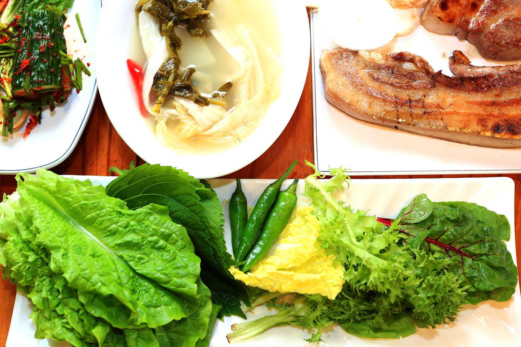 유난히도 싱싱해 보이는 모듬쌈과 함께 즐기면 더욱 풍성한 고기맛을 즐길수 있습니다.