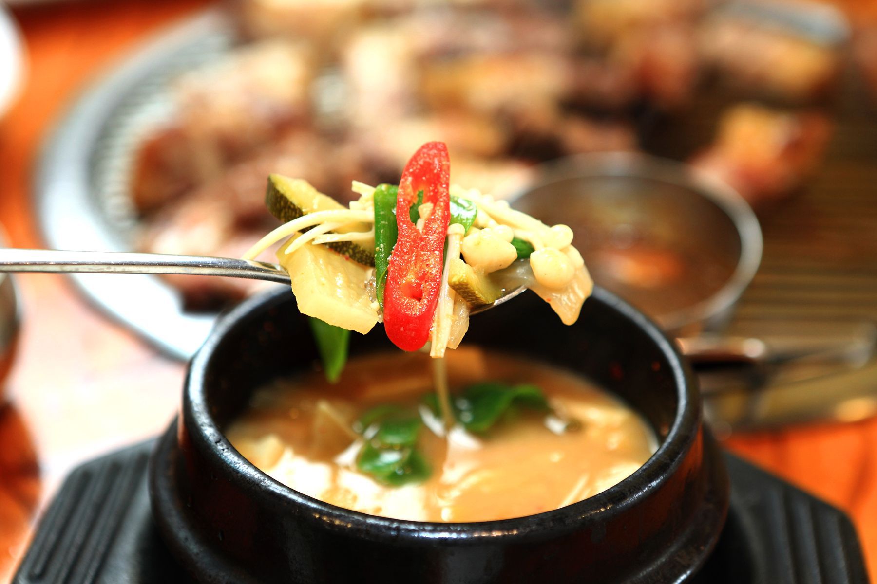 그리고 다양한 재료를 넣어 깊고 알싸한 맛을 내는 된장찌개와 시원한 물냉면도
