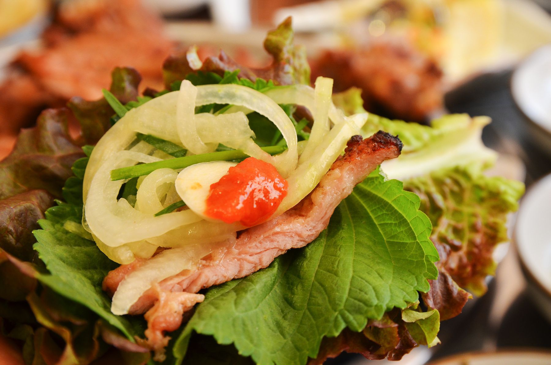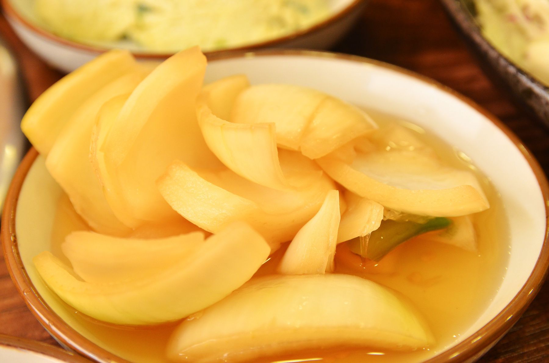 느낌함과 맷운맛을 잡아주는 양파장아찌및 깻잎장아찌등 다양한 밑반찬들이 제공됩니다.