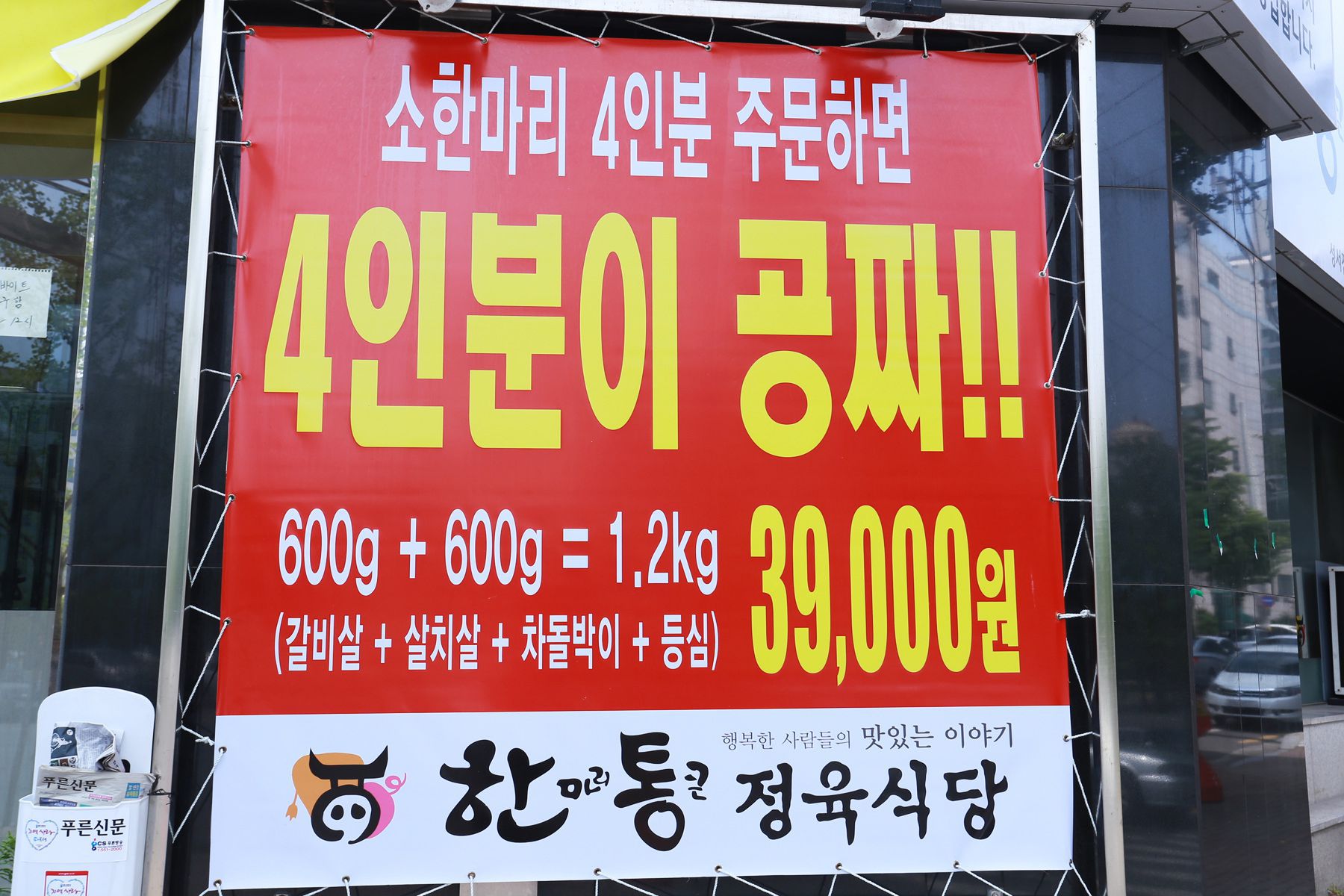 대구 달서구 이곡동에 위치한 한통은 '한마리 통큰 정육식당'으로 서비스가 어마어마한 곳입니다.