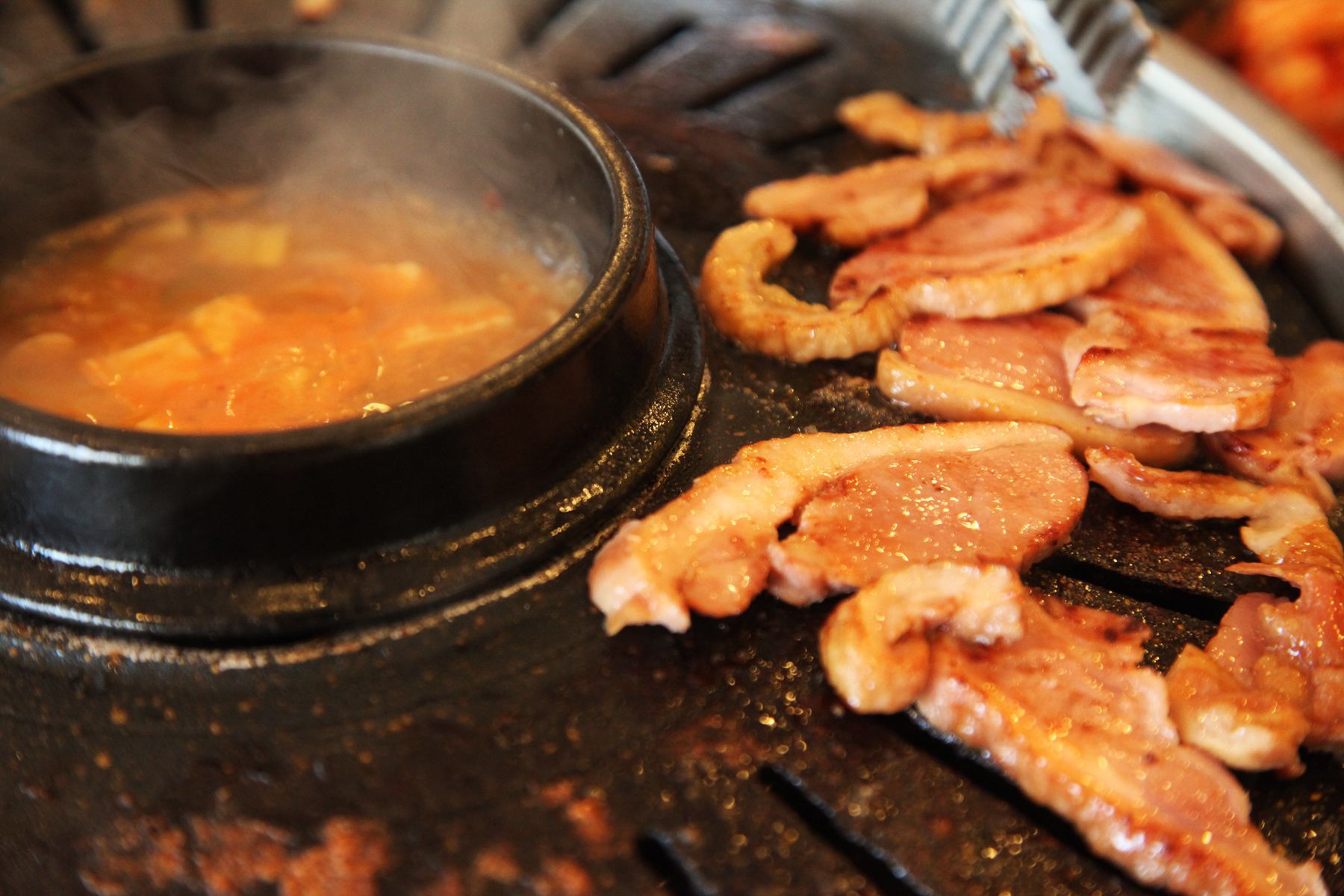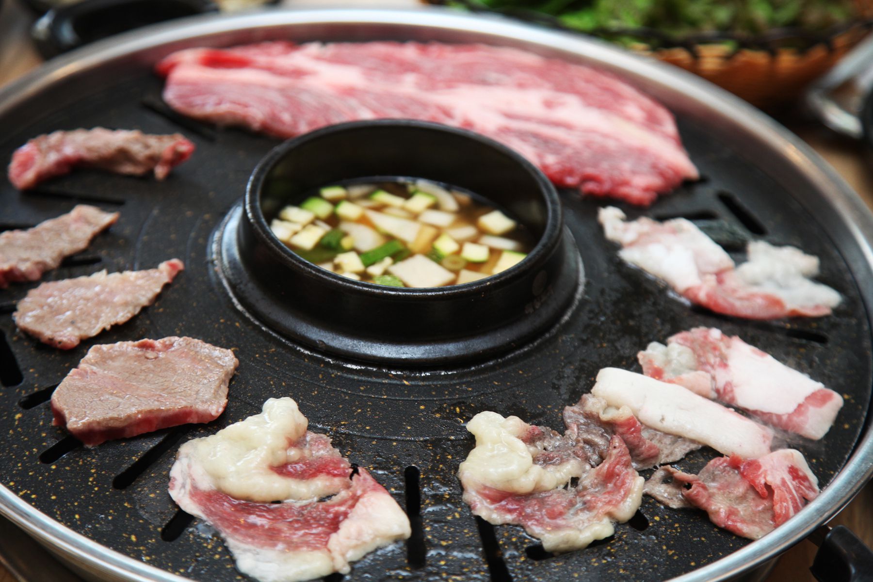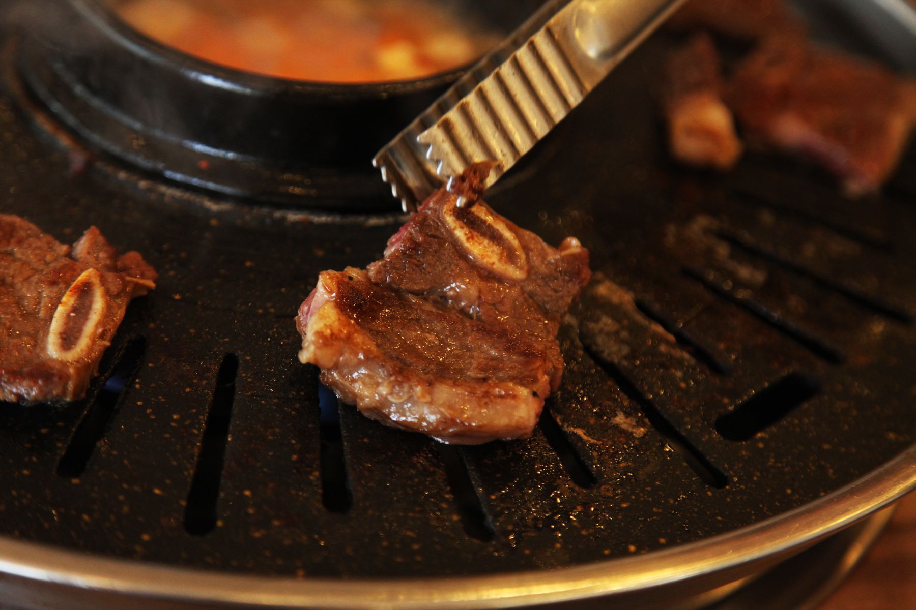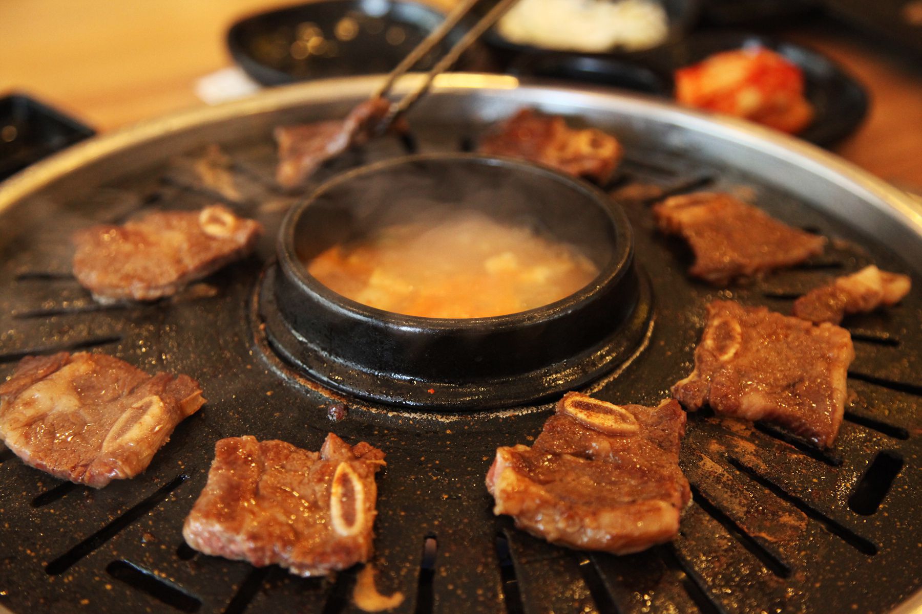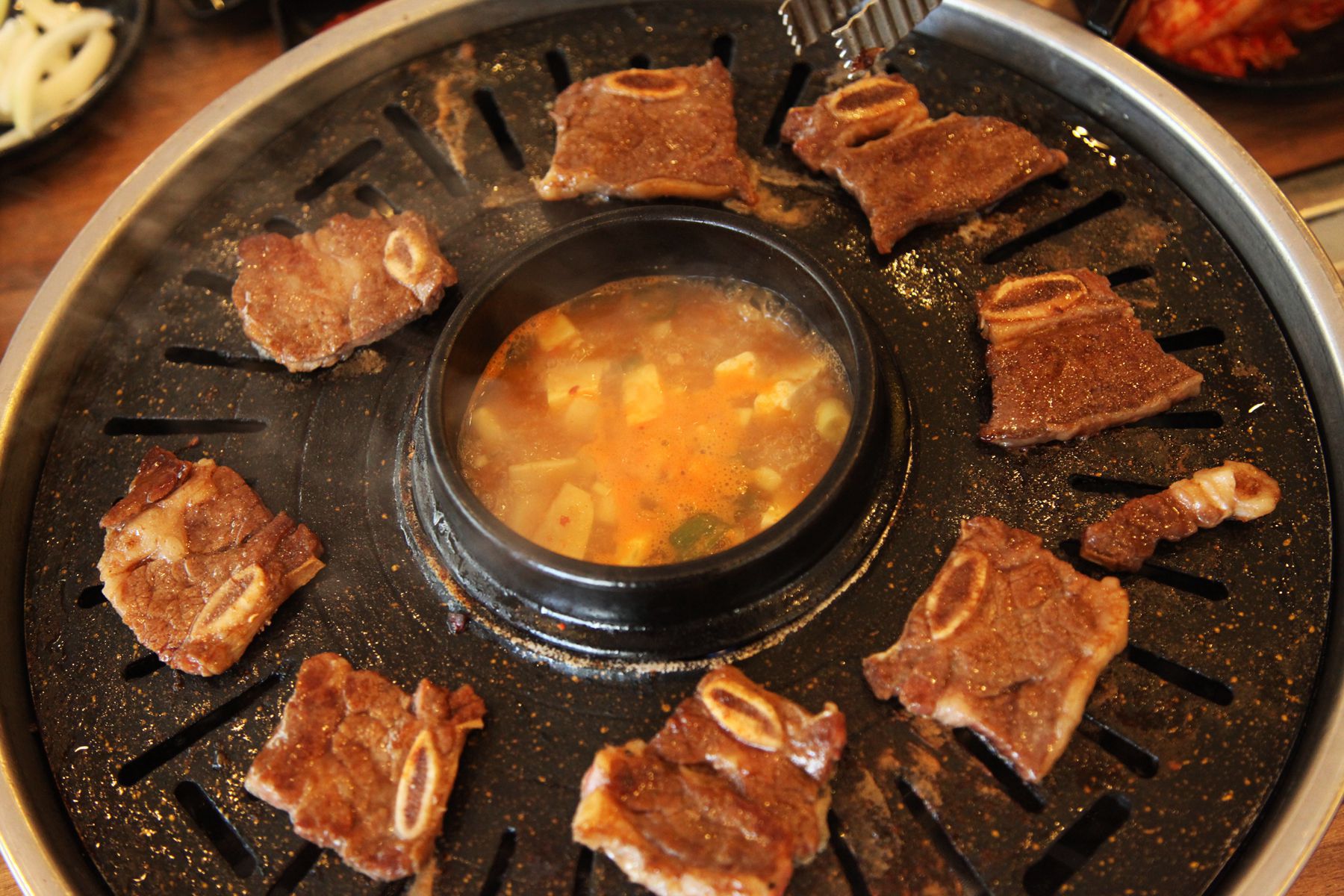 가운데서는 된장찌개가 보글보글 끓고 불판에서는 LA갈비를 익혀 드시면 됩니다.