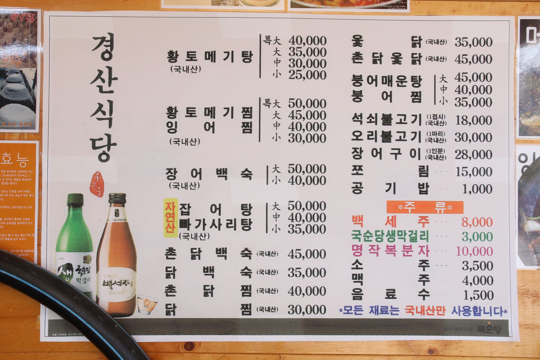 이곳에는 메기, 잉어,잡어 등 여러 종류로 준비되는 민물고기 매운탕이