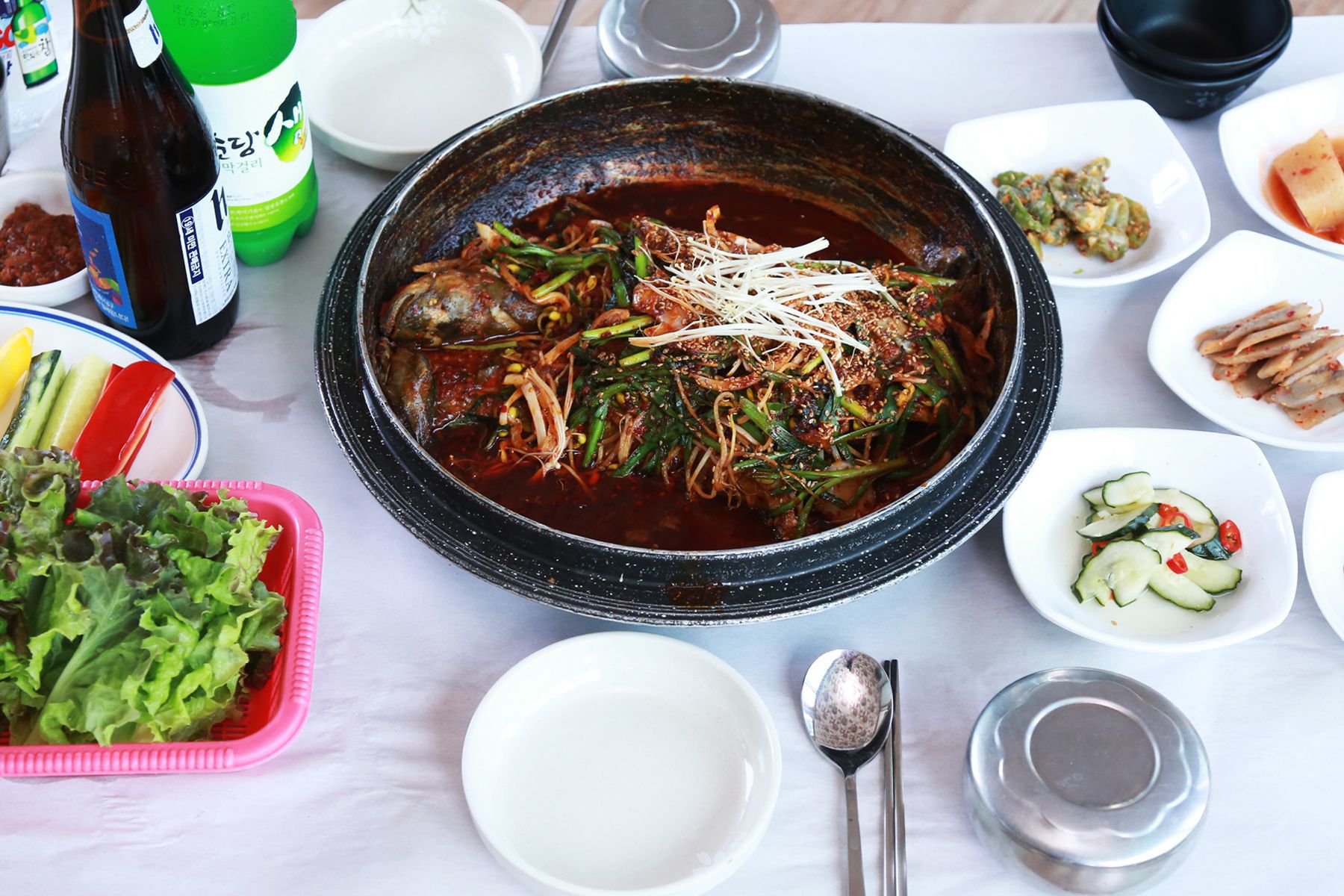 메기도 듬뿍 ! 야채도 수북한 메기 매운탕은 국물도 얼큰하고 메기 살도