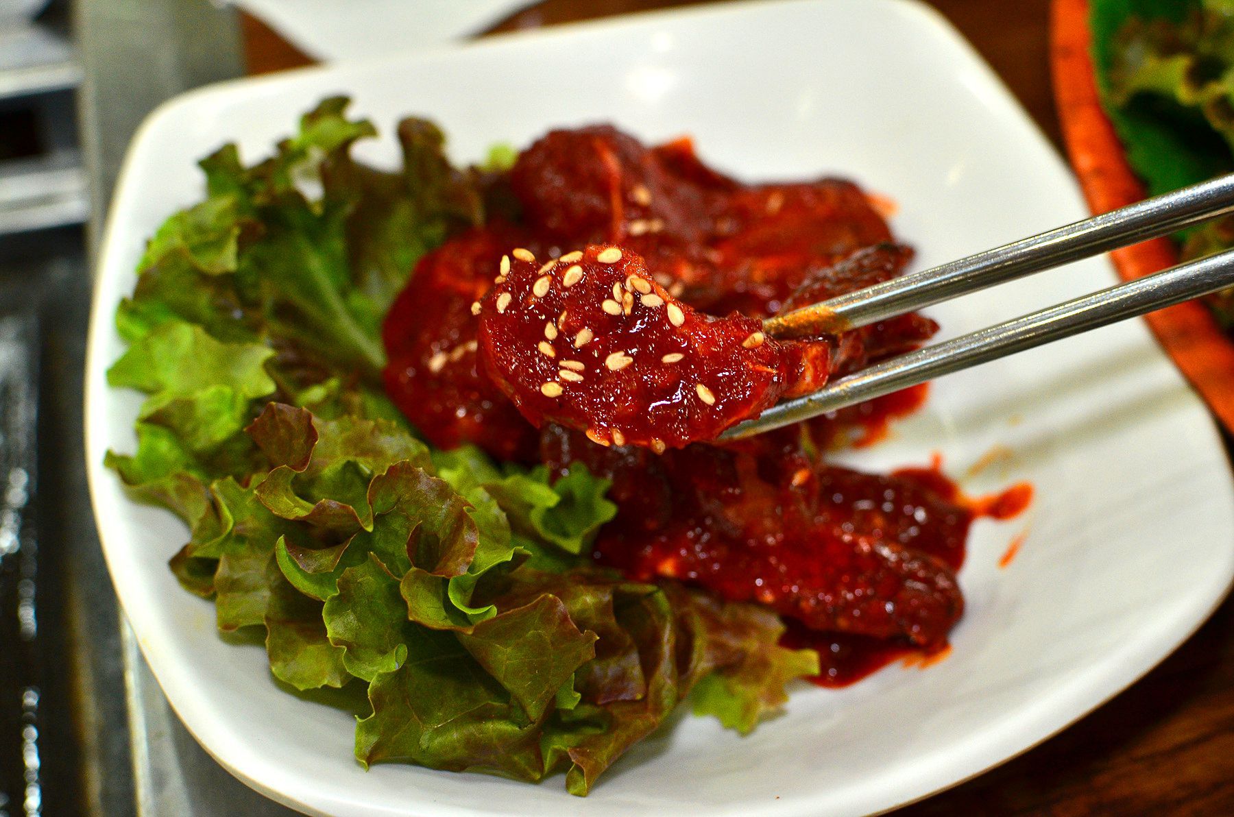 이곳 식당만의 시크릿소스로 만들어진 양념갈비는 짜지 않고 간이 적당해 자극적이지 않고