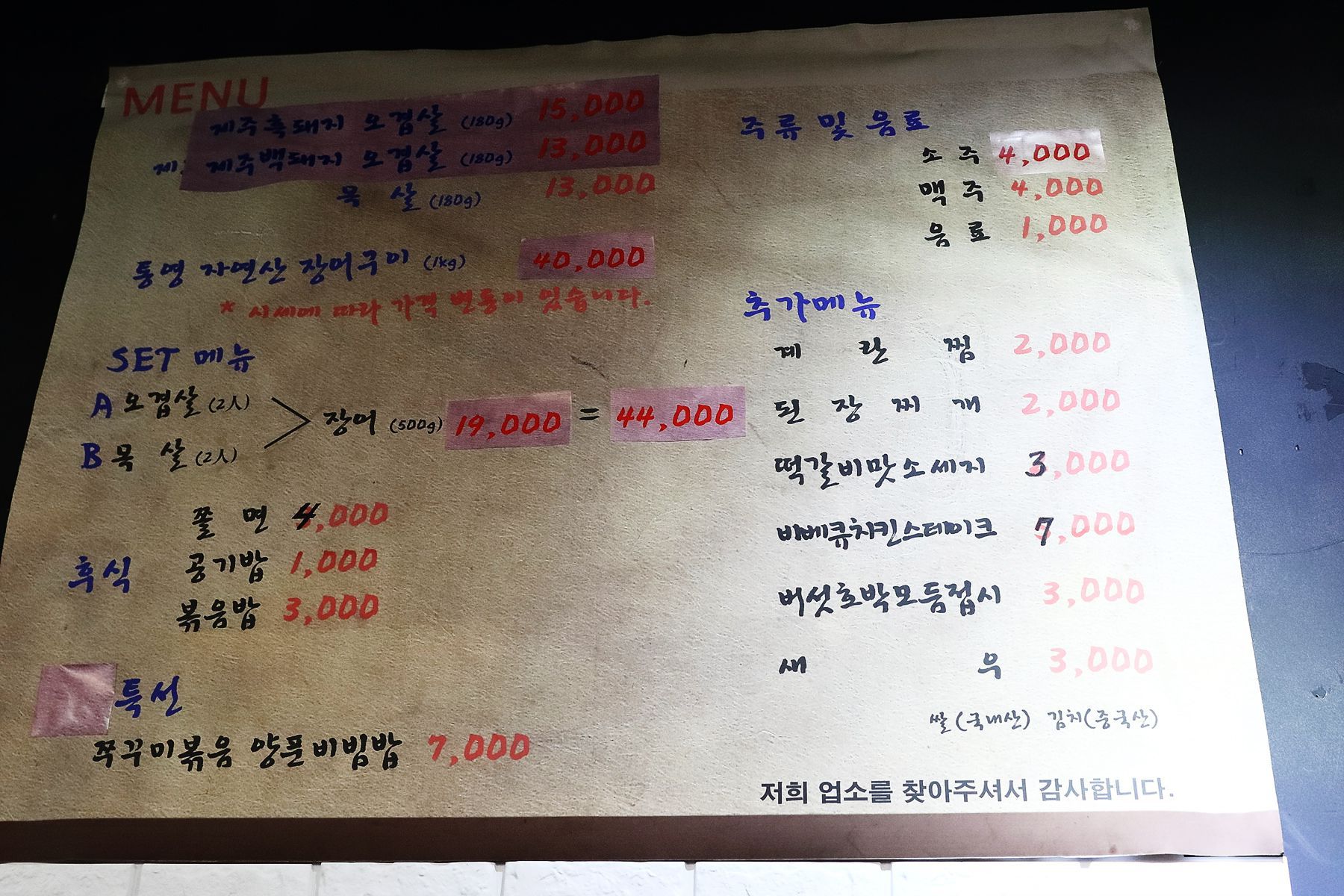 오직 국산만 취급하는 곳으로 질 좋은 고기를 사용하고 있습니다.