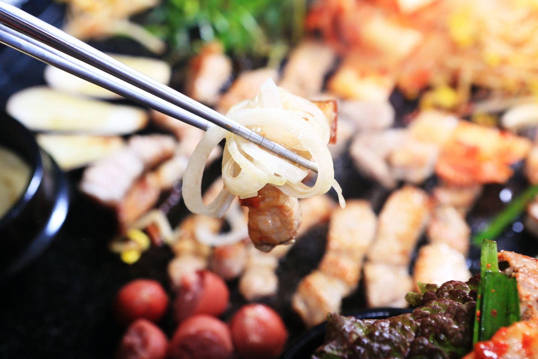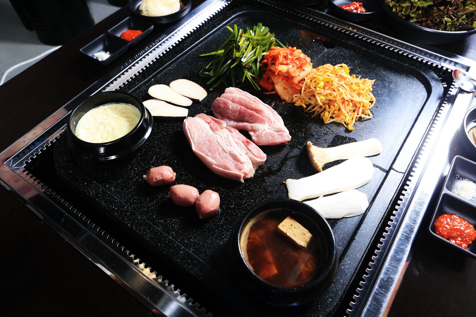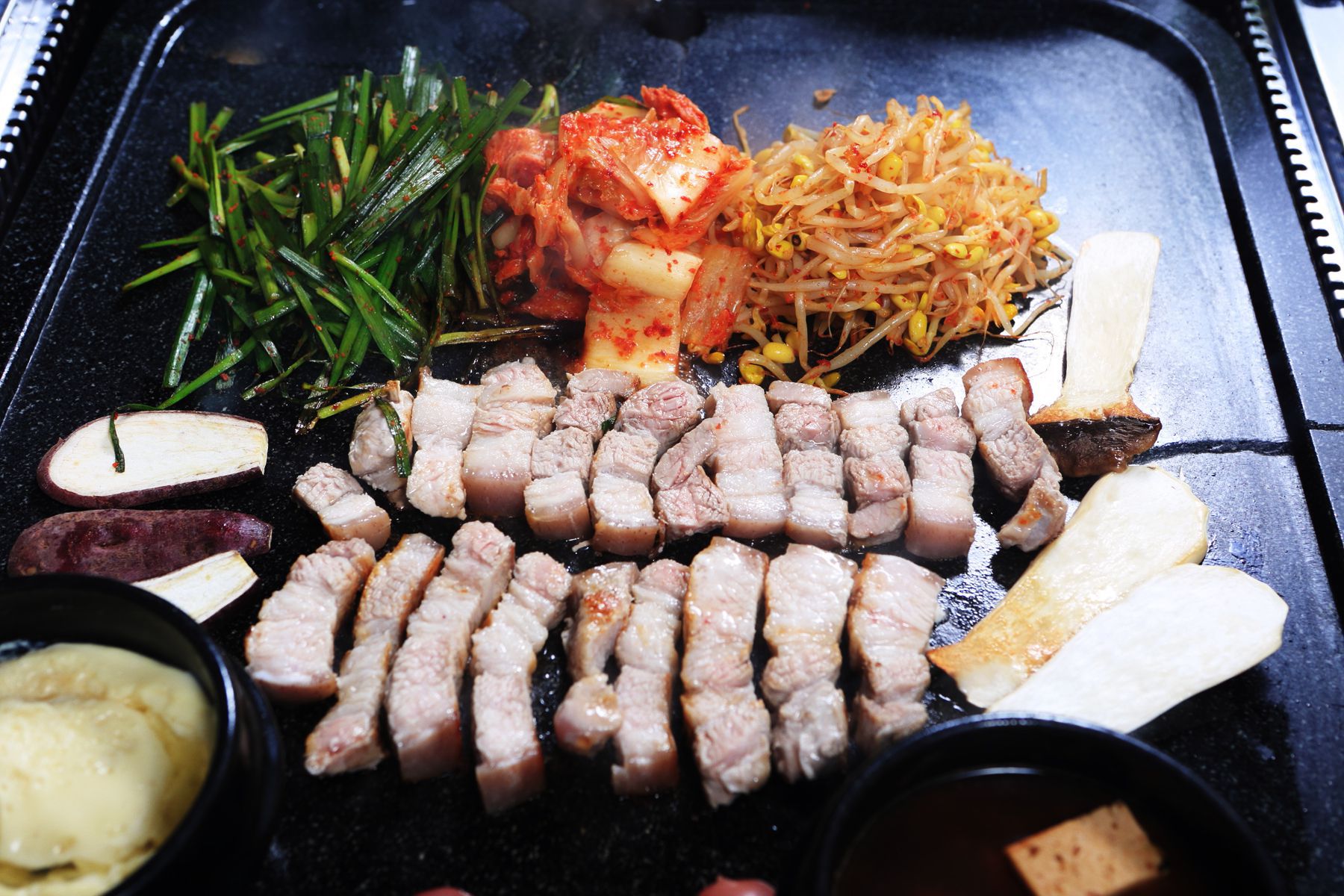 돌판위에서 맛있게 구워지는 제주흑돼지오겹살!!