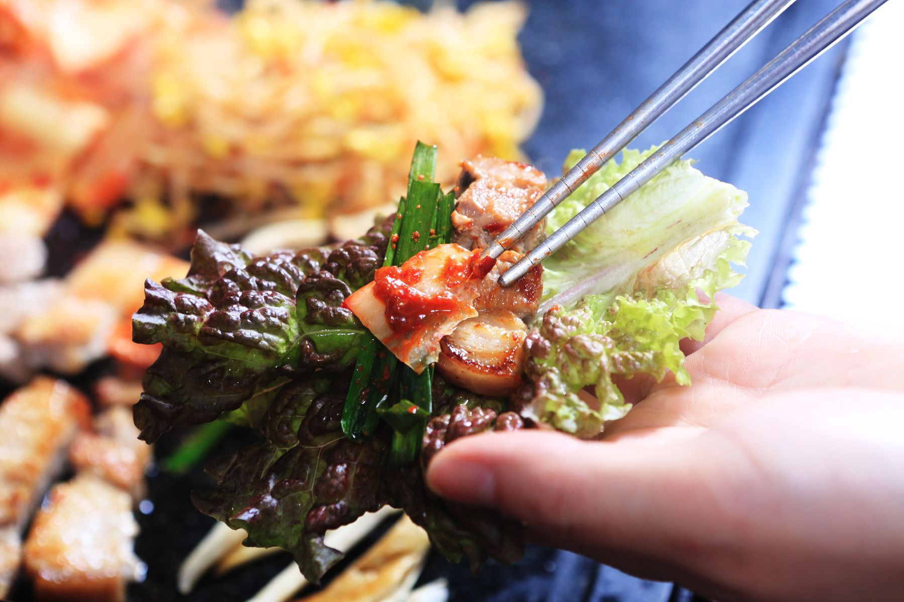 그냥 먹어도 맛있고, 야채에 싸먹으면 더욱 맛있는 오겹살의 환상적인맛!!