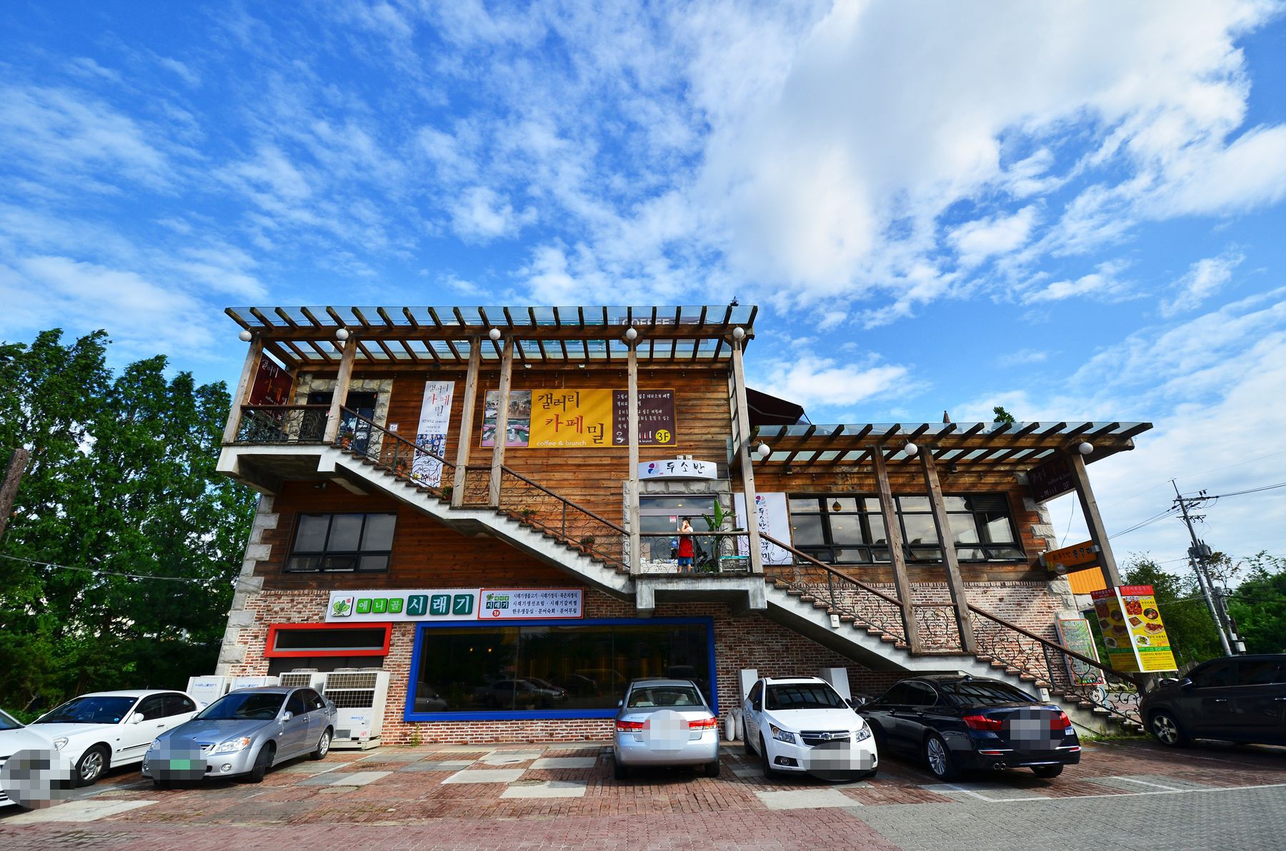 애니골 윗길 아랫길이 있는 사거리에서 우회전하면 1층에 애니골 시래기건물이 보이고 카페는 3층에 위치하고 있습니다.