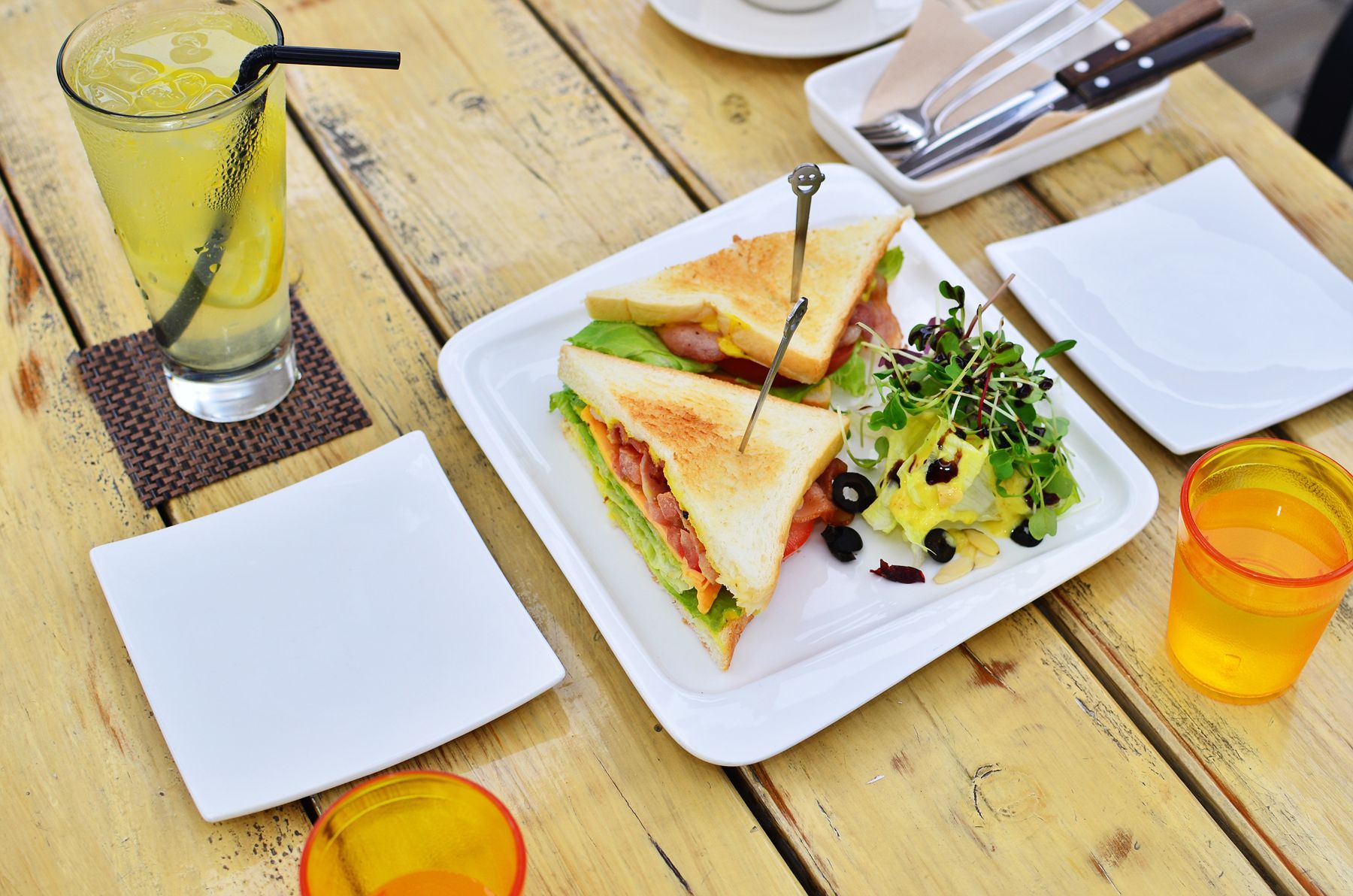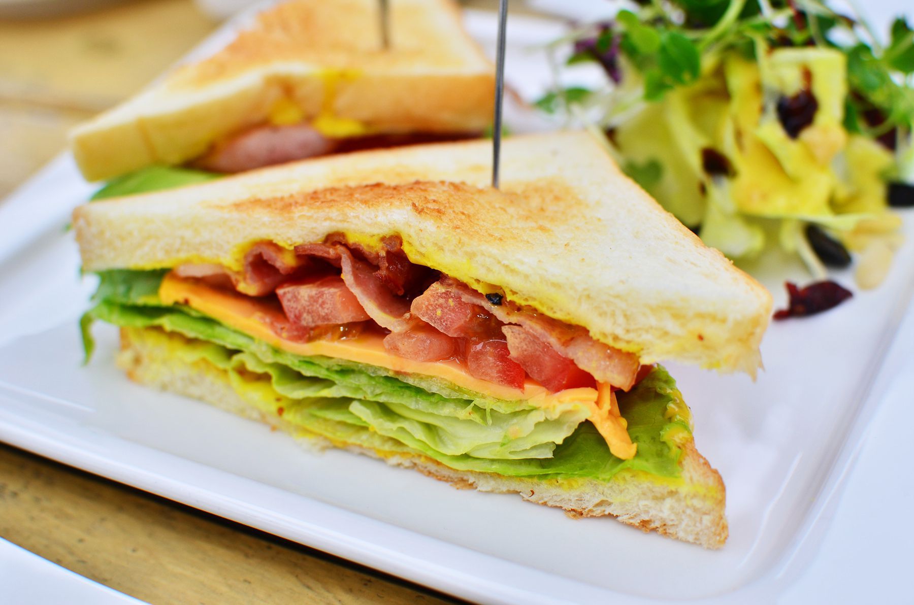 수제 머스타드소스와 베이컨, 상추, 토마토가 들어가 싱그런 샌드위치랍니다.