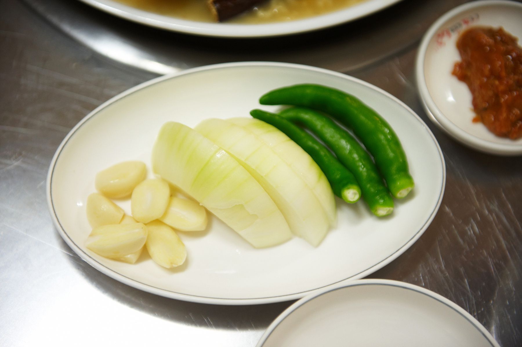 고추,양파,마늘과 장아찌,그리고 새콤한 김치 이 세가지만 있으면 느끼함을 잡아주며 담백하게 드실 수 있습니다.