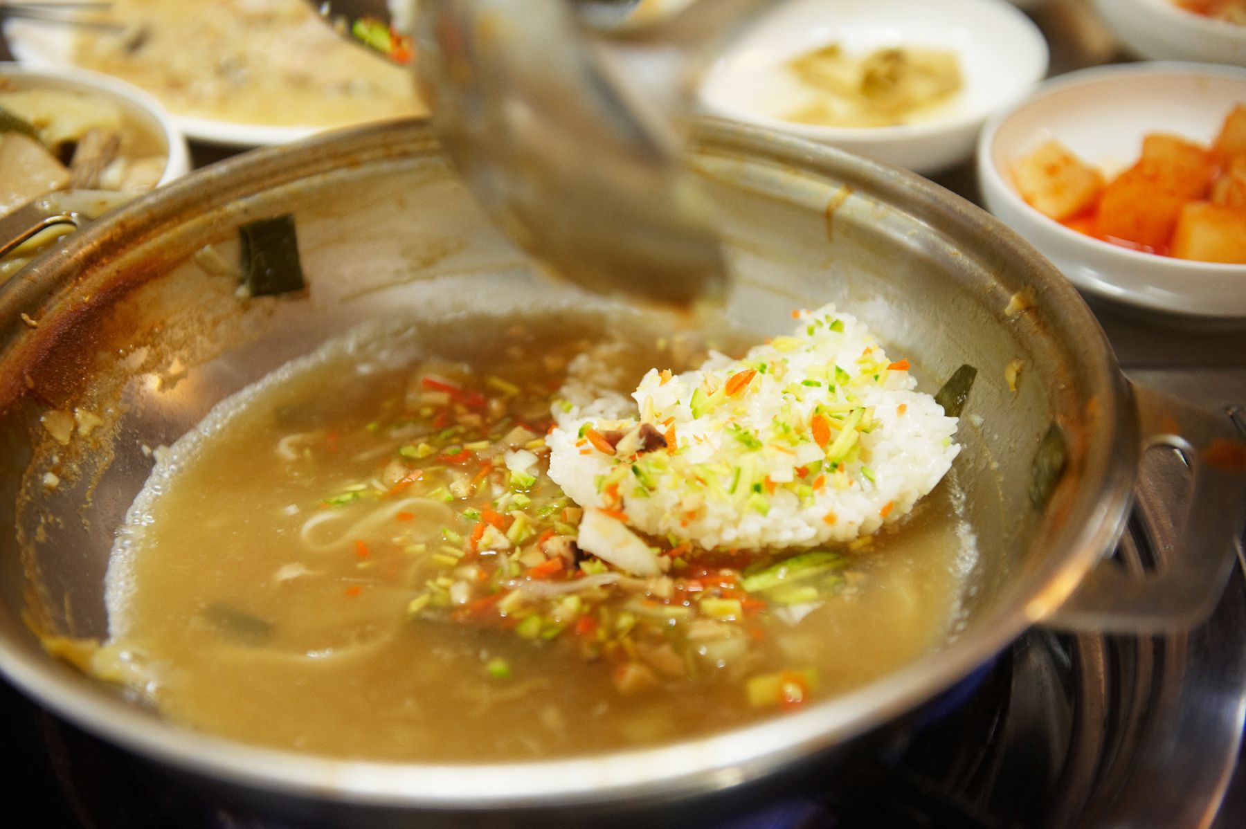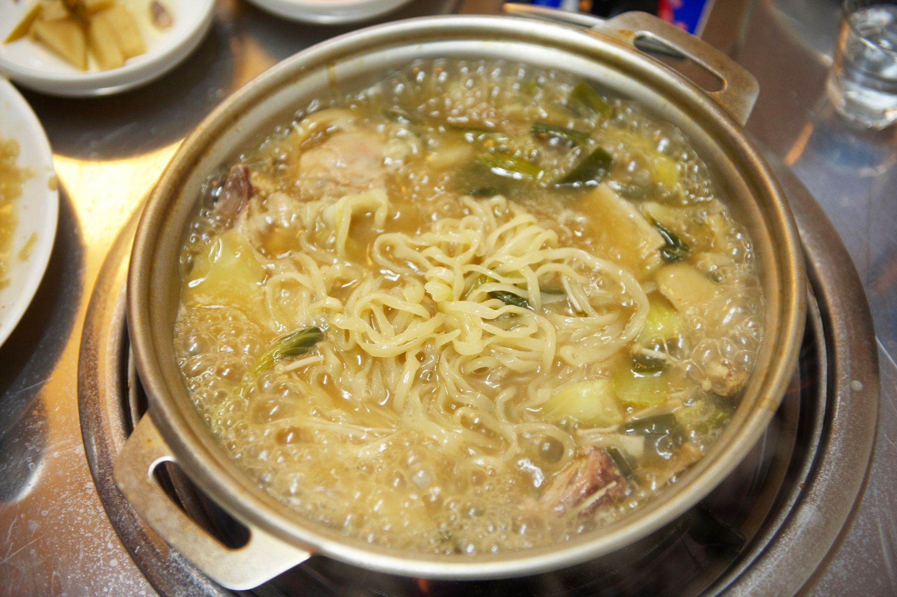 면발이 탱탱한 칼국수를 남은 닭육수에 말아서 드시거나