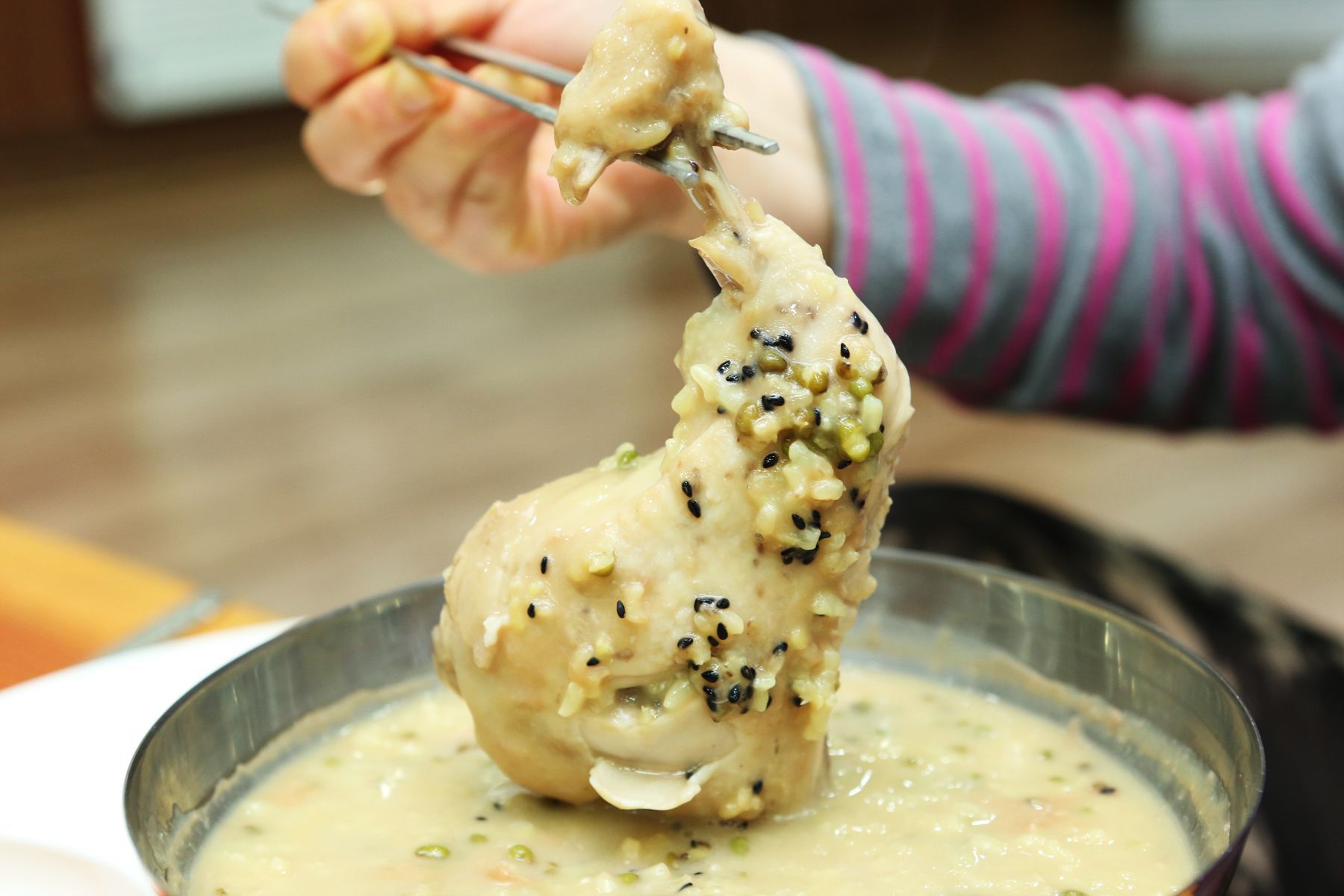 많은 분들이 찾을 만큼 대표적인 신촌포항식당의 닭백숙은 걸쭉한 녹두죽속에 풍덩 빠져 있는 커다란 닭다리가 참 인상적이며