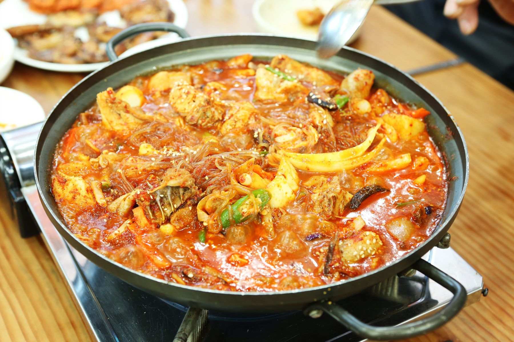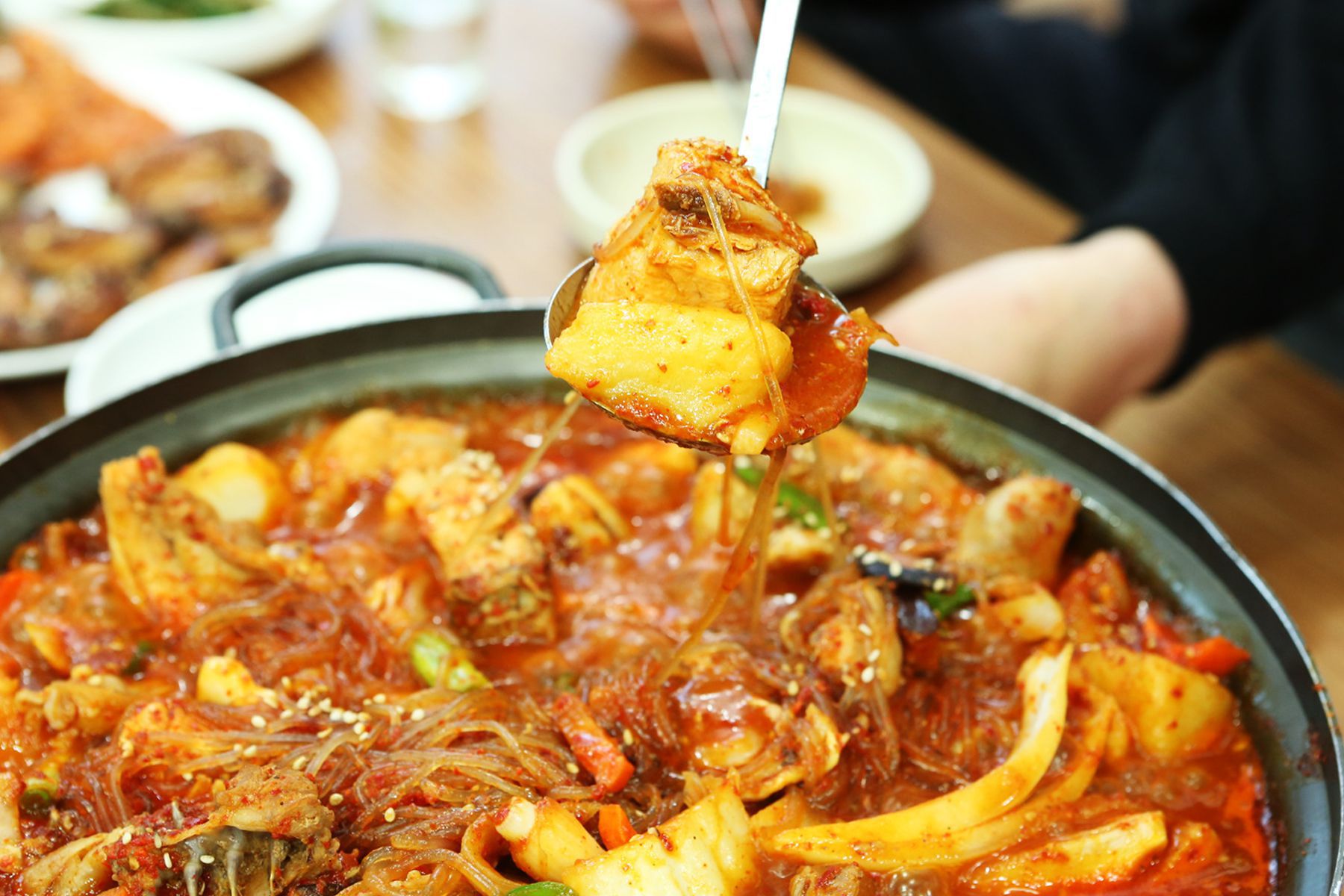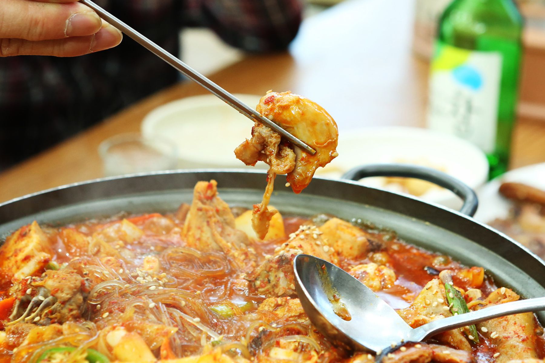 갖은 야채들과 쫄깃한 당면까지 들어있어 건져먹는 재미도 느껴볼 수 있으며 닭고기 속까지 잘 스며들은 양념맛이 좋아 젓가락을 놓을 새가 없을 정도이며