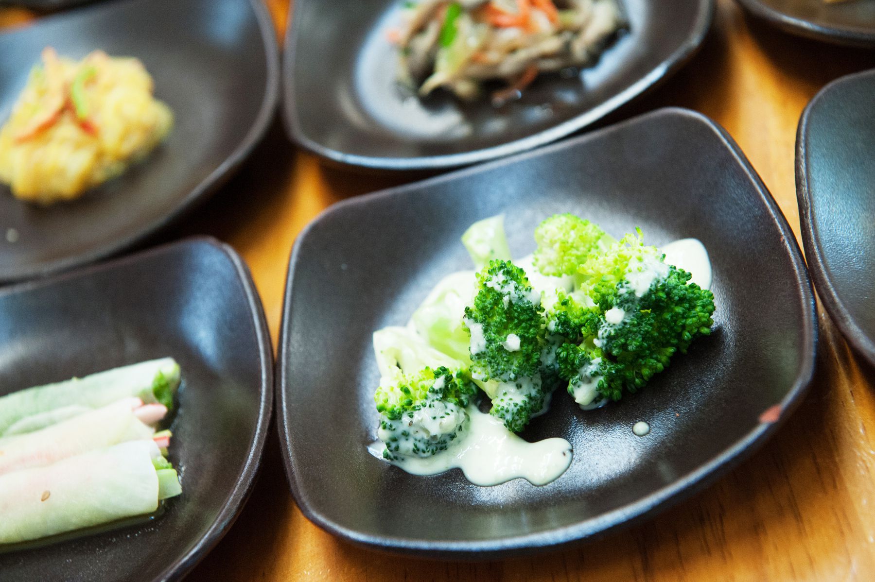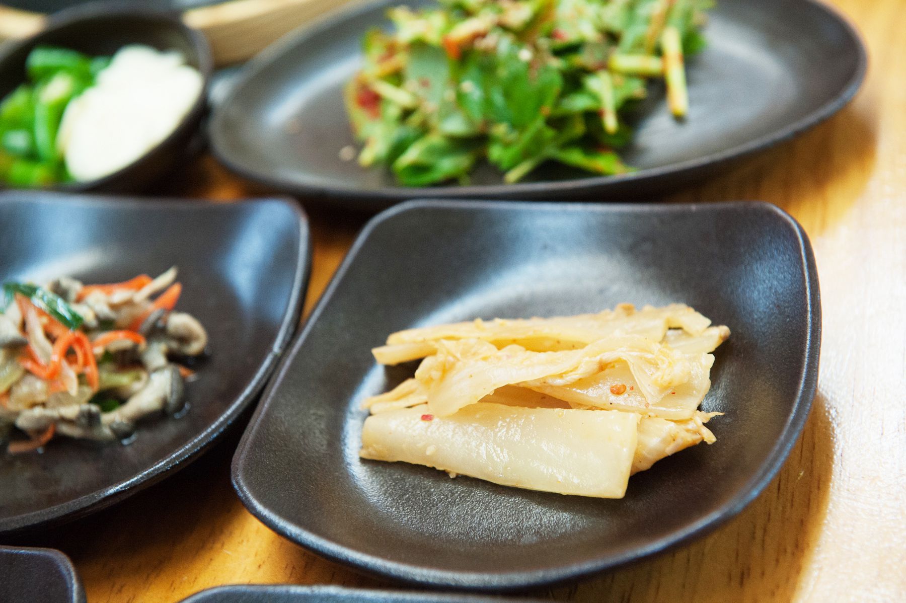 심플하고 깔끔함이 눈으로 느껴지는 접시에 게장, 전, 겉절이등 고정된 반찬외에도 매일 바뀌는 나물은 산나물로 조리되어 나오며