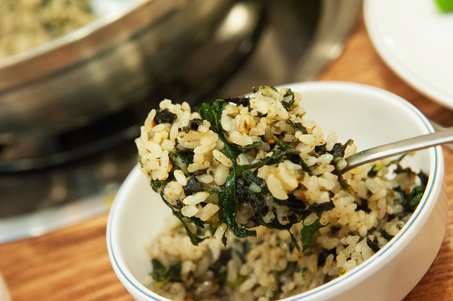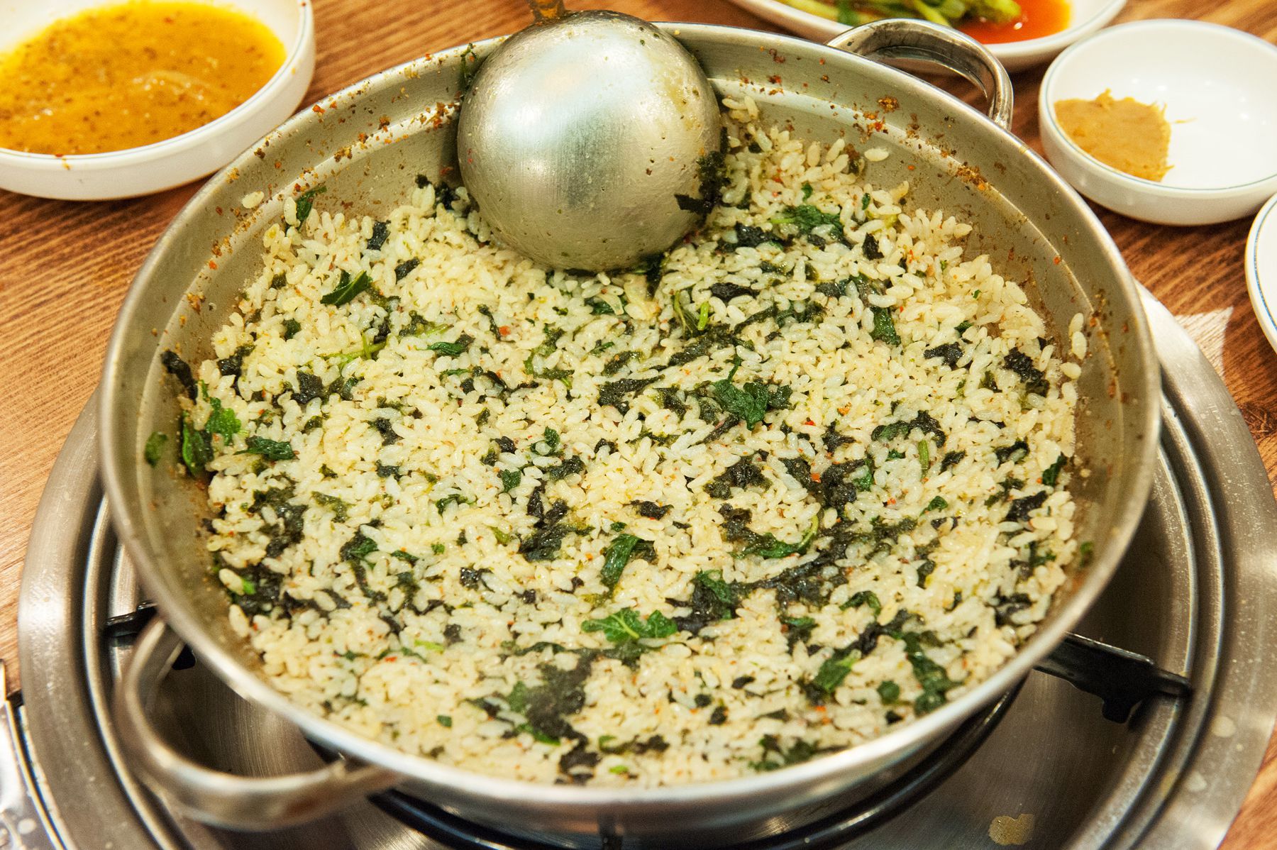 마지막 남은국물에 향긋한깻잎과 고소한 김가루와 함께 볶은 볶음밥은 이곳 식당의 또 다른 별미이니