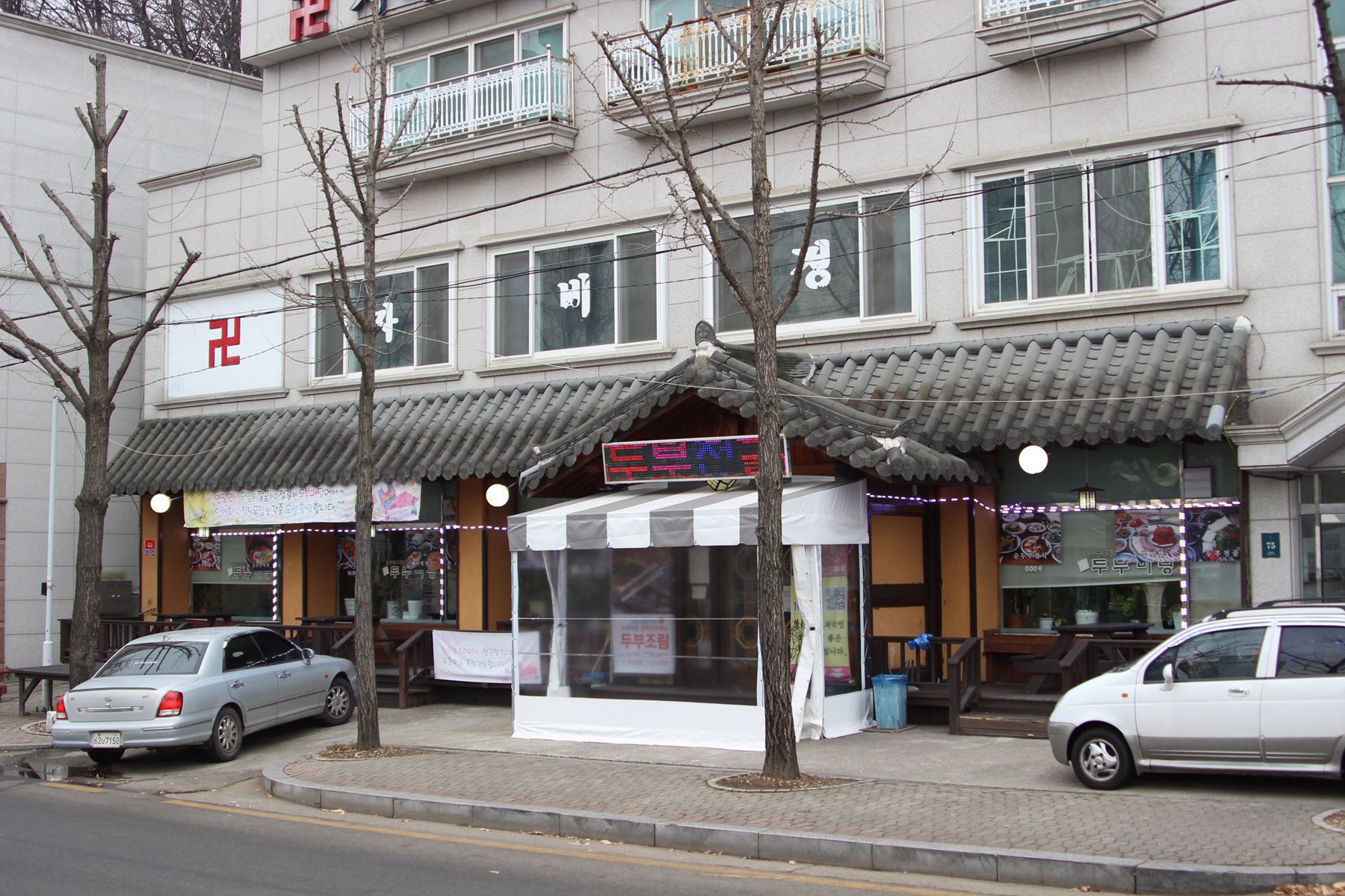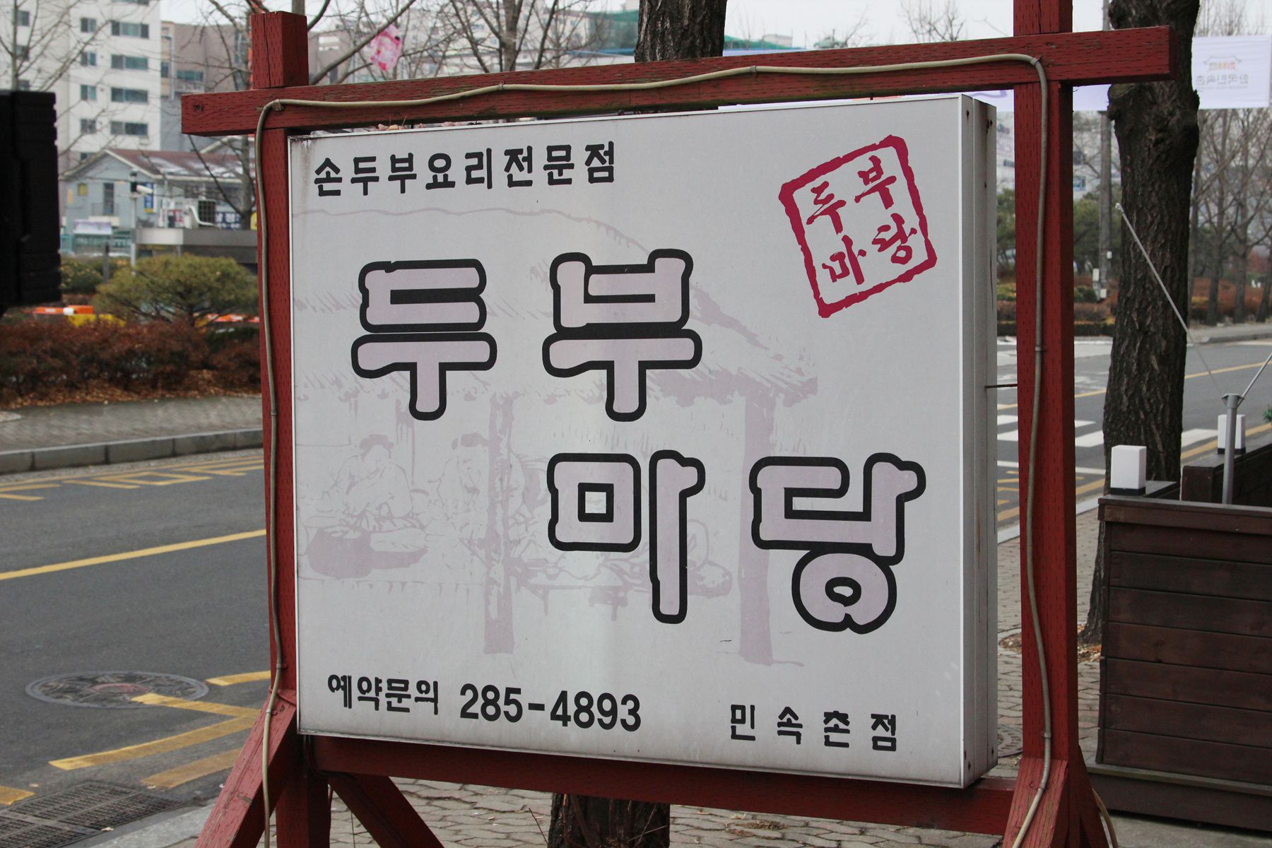 이곳은 국내산 콩을 이용해 가마솥에서 매일매일 손수 만든 손두부를 재료로해 다양한 두부요리를 선보이고 있는 손두부요리전문점인 두부마당민속촌점입니다.