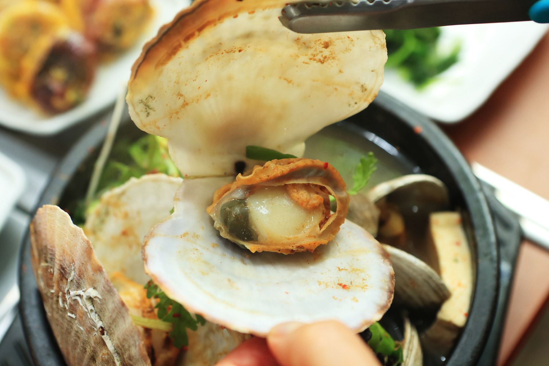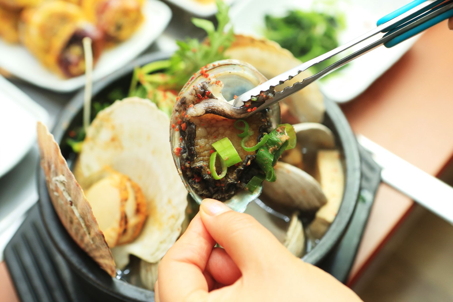 싱싱한 해산물이 가득 들어가 인기많은 '전복해물뚝배기' 입니다.