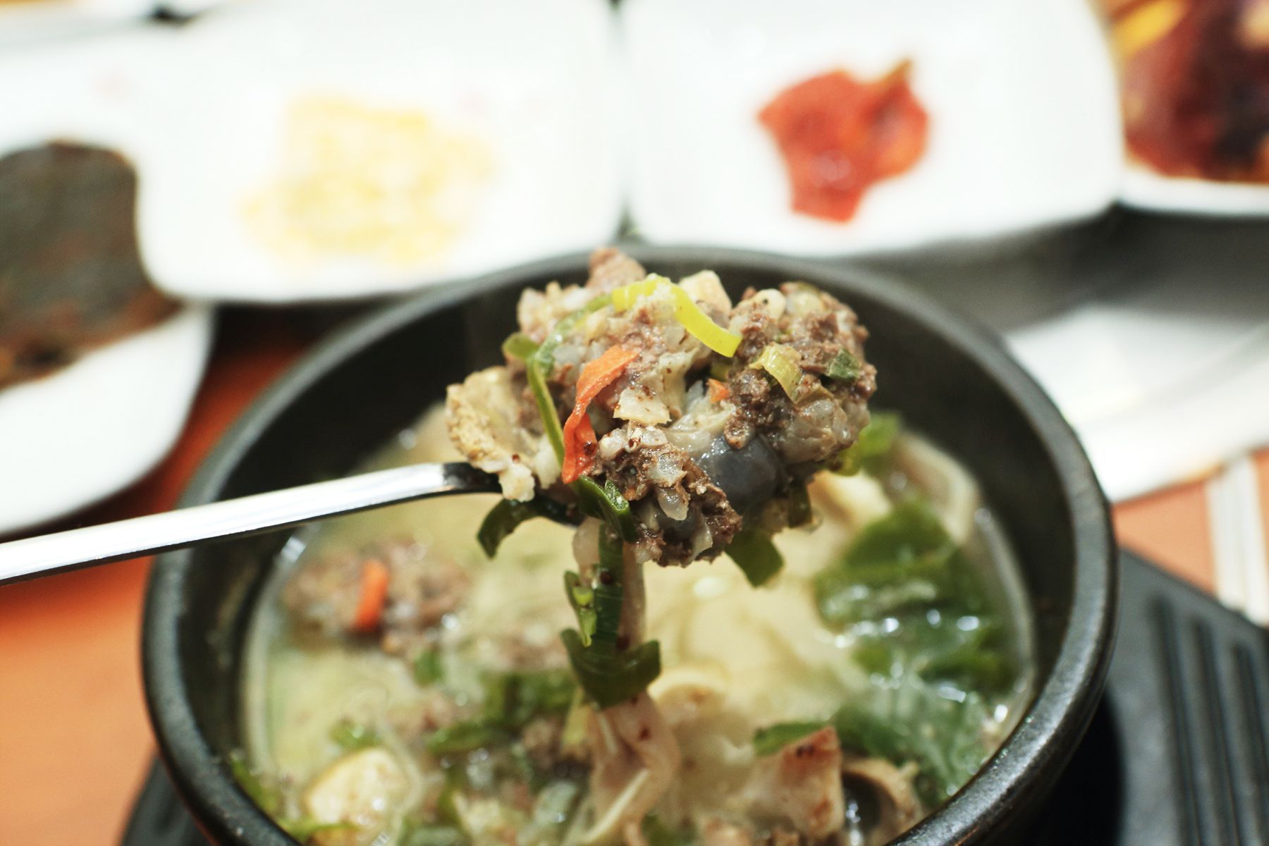 진한 국물 맛과 고소한 아바이순대가 듬뿍 들어간 아바이순대국은