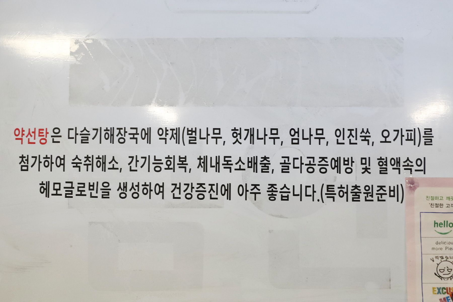 다슬기가 듬뿍 들어가 있고 한약재를 첨가해 끓인 약선탕이라 말그대로 약이되는 음식입니다.