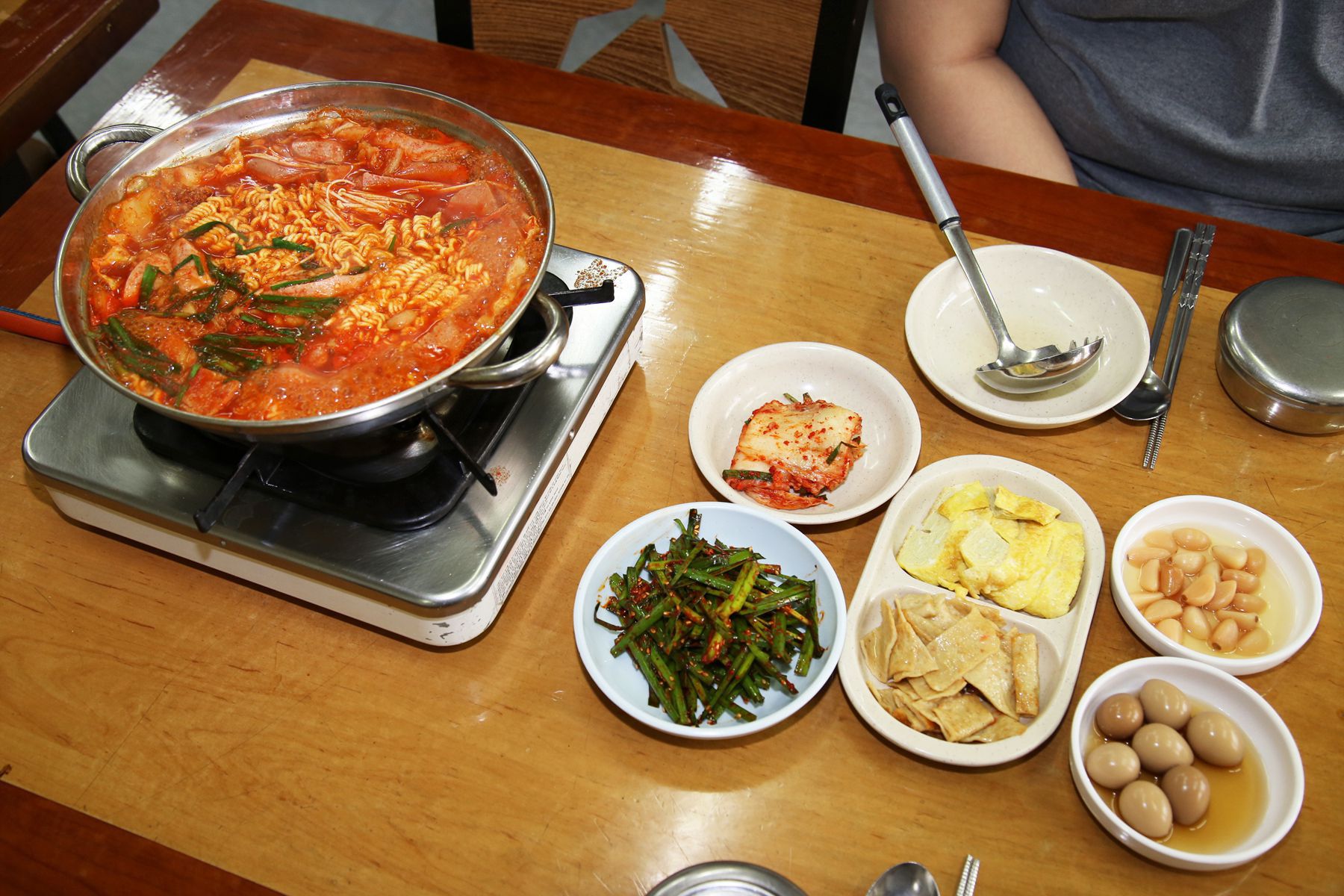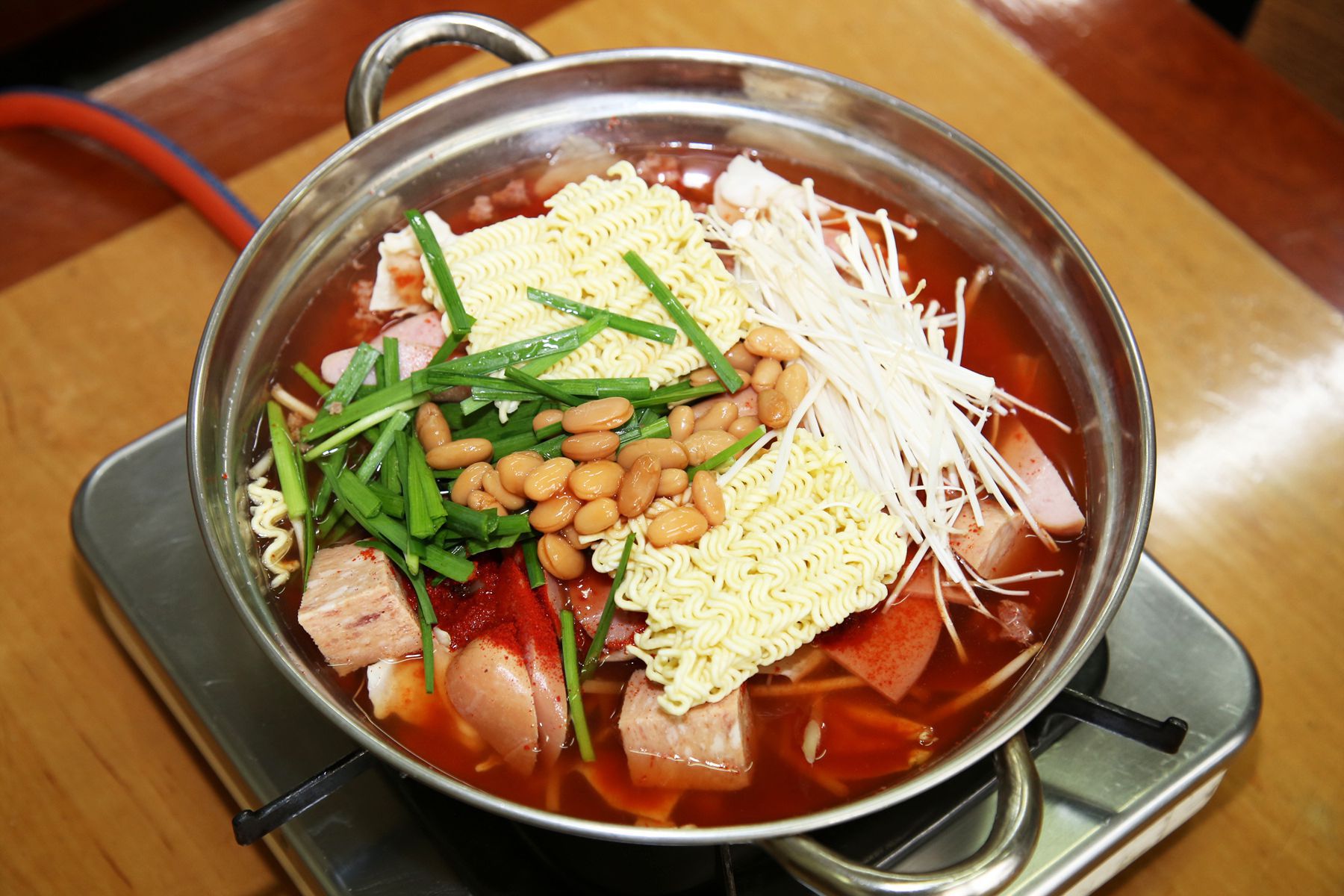 모듬스테이크만큼이나 인기를 끌고있는 부대전골은 냄비가 넘칠정도로 푸짐함을 자랑하며