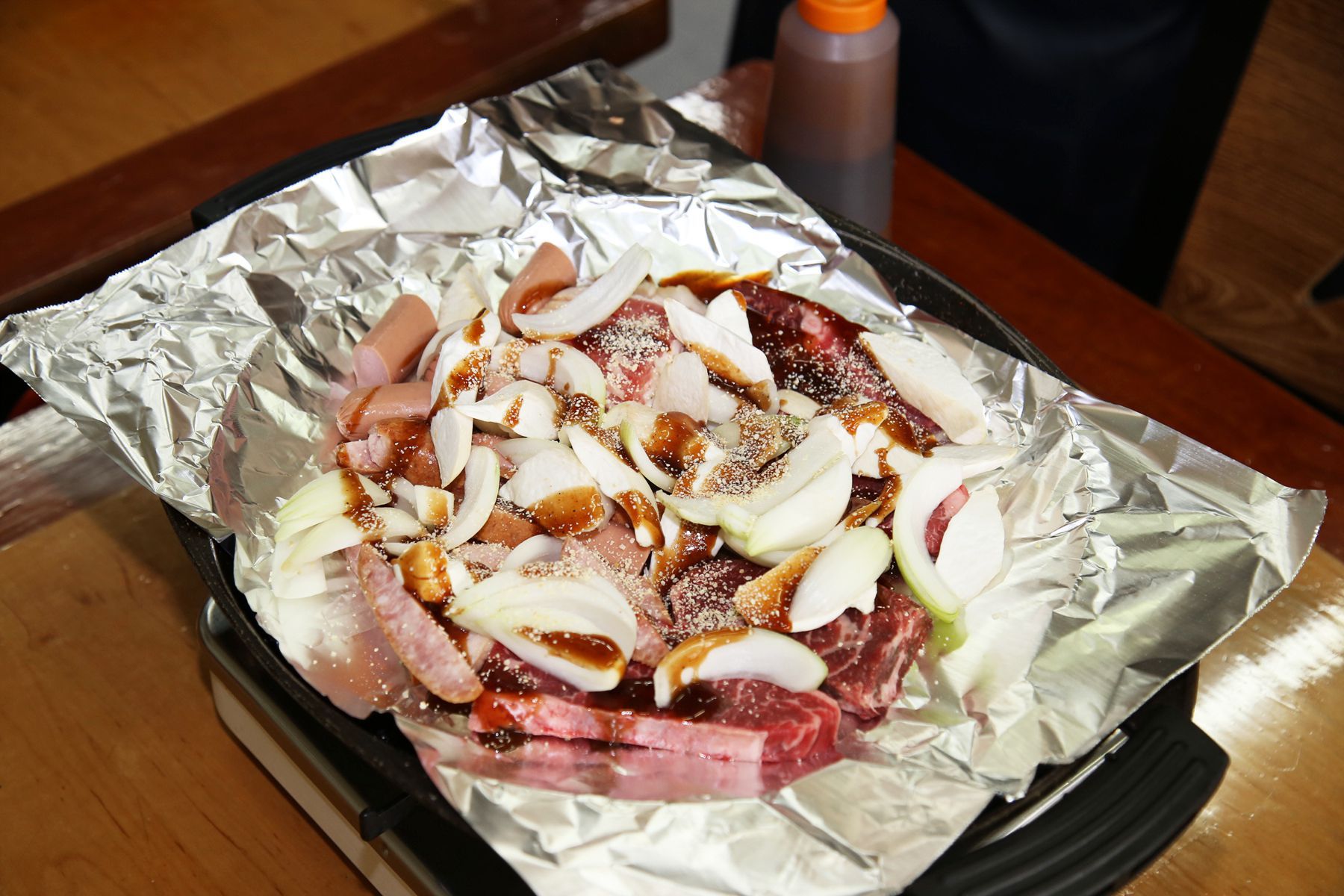 일반적인 스테이크가 아닌 삼겹살처럼 잘라서 철판위에 야채와 함께 버터를 이용해 구워먹는것을 처음 시작으로