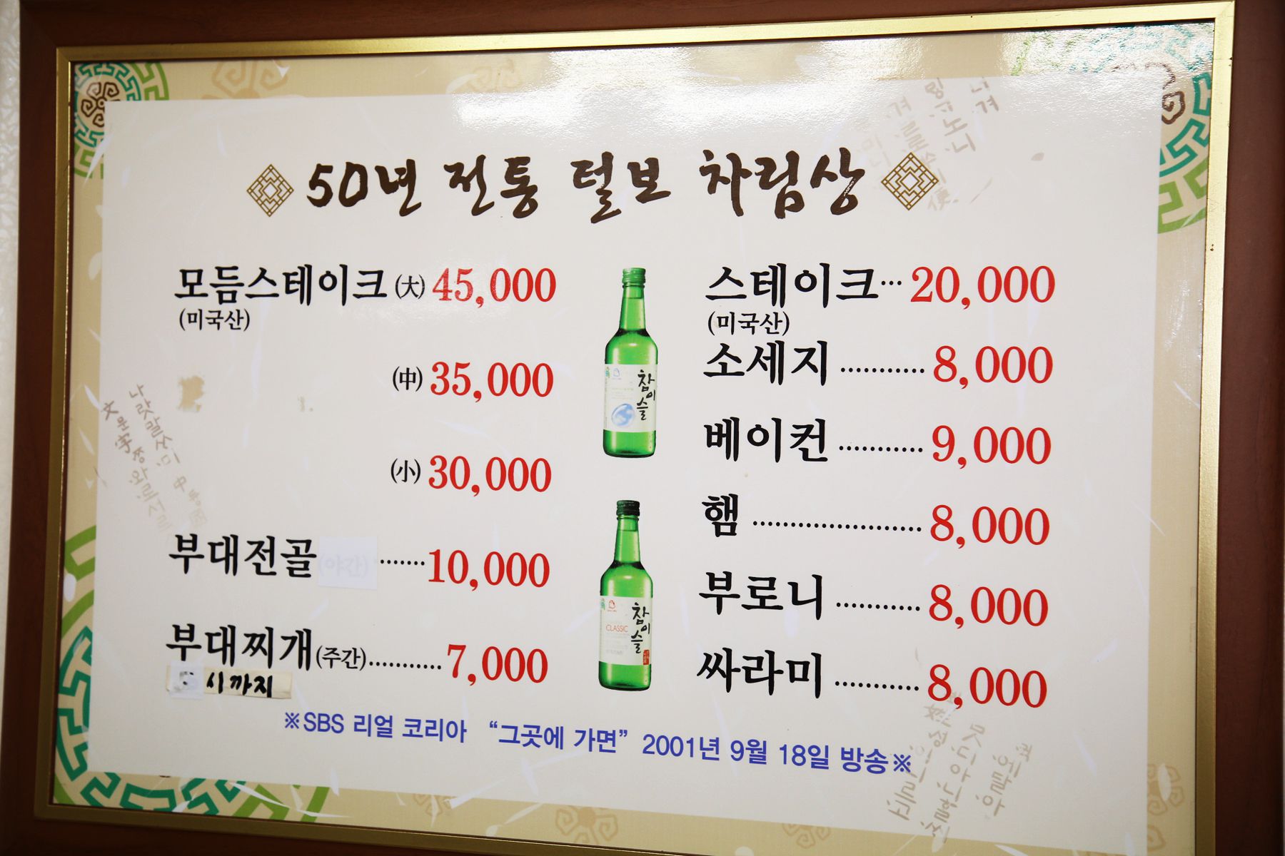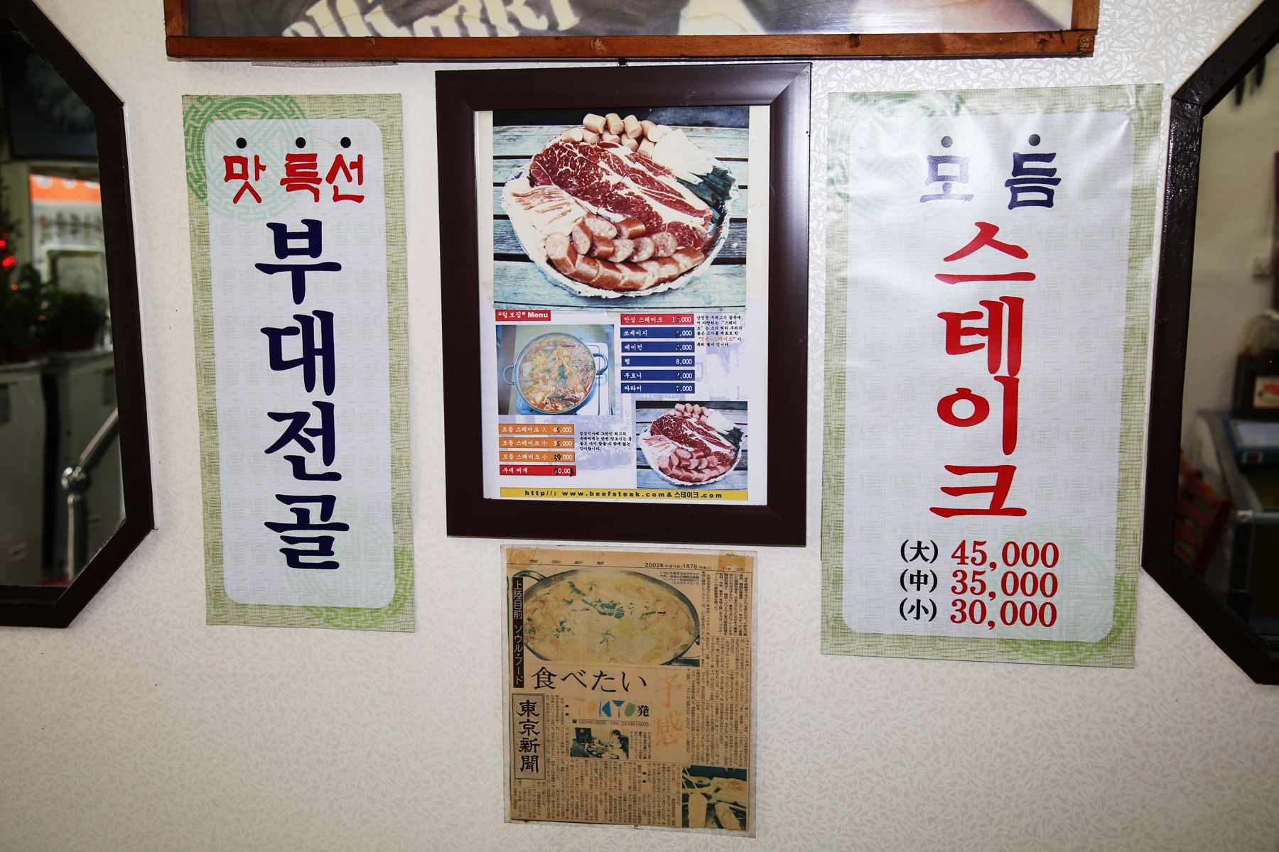 메뉴는 깔끔하게 모듬스테이크와 부대전골,부대찌개가 준비되어있는데요,