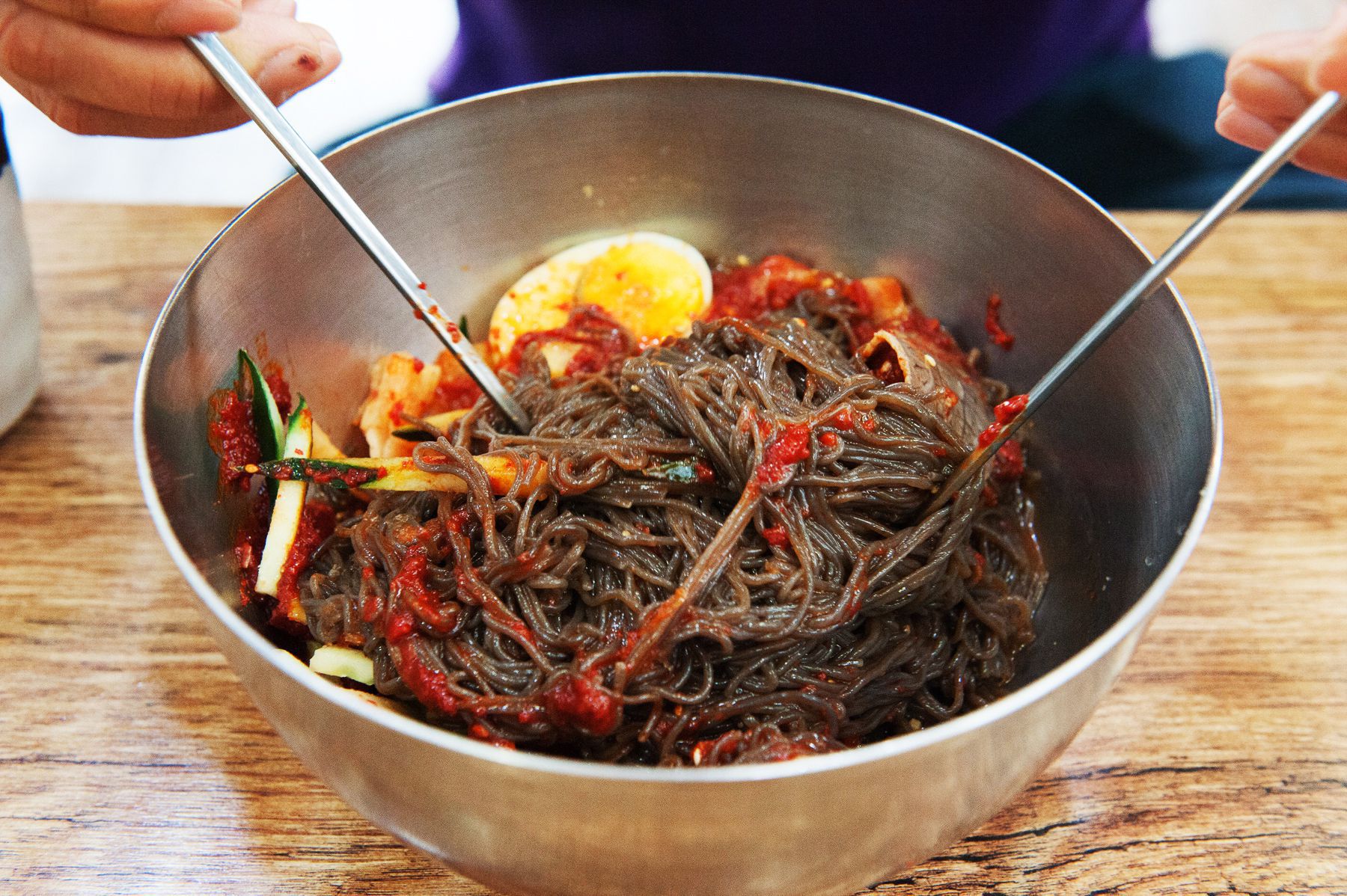 탱탱한 면발과 맛있는 양념으로 입맛 자극하는 '비빔냉면' 입니다.