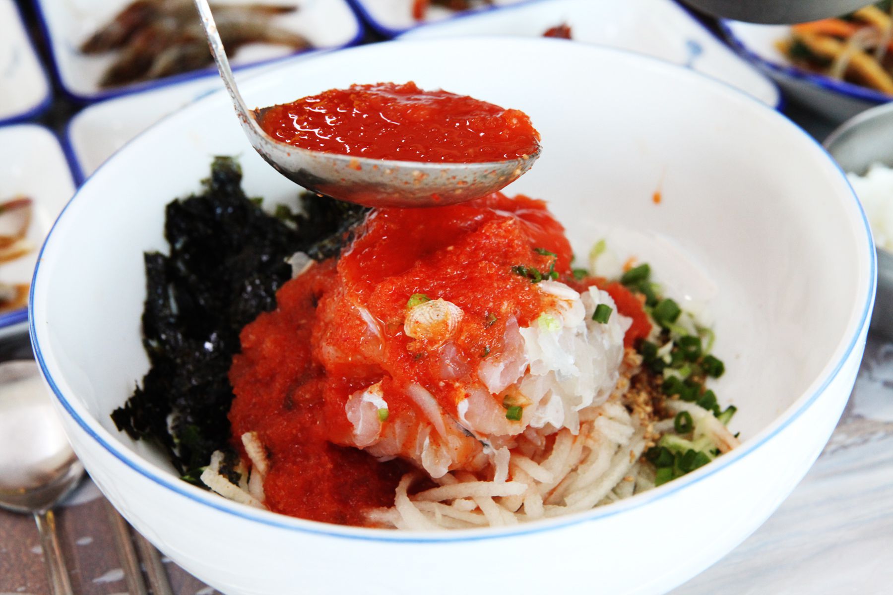 자연산 잡어와 전복, 멍게, 해삼이 들어간 '물회'도 인기많은 메뉴입니다.