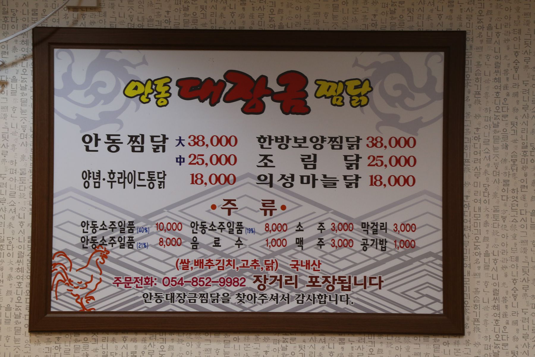 대표적인 메뉴 안동찜닭과 함께 건강을 생각한 한방찜닭,기본 후라이드,양념등 닭요리를 드실 수있으며