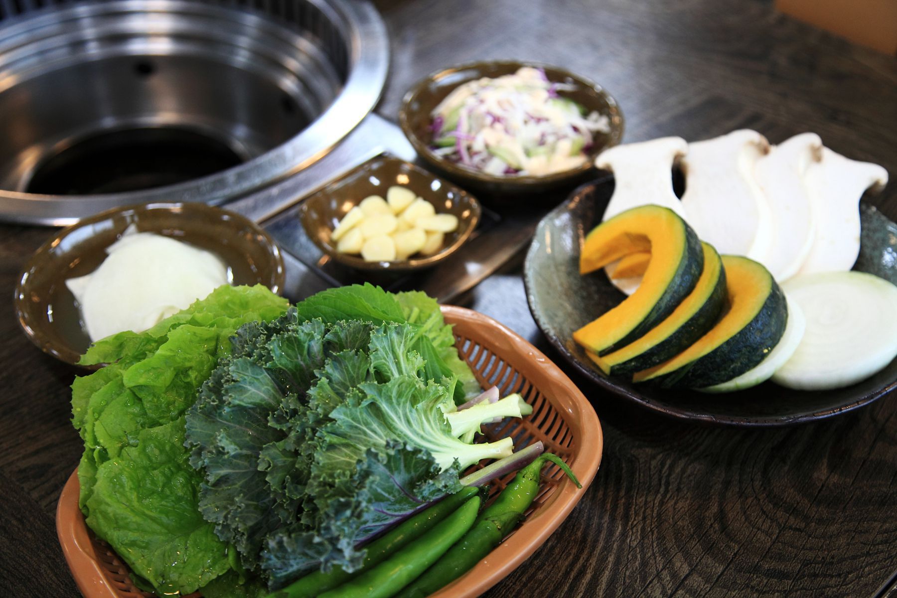 쌈싸먹기 좋은 신선한 채소와 흑돼지와 함께 구워먹으면 맛좋은 단호박과 버섯,양파!