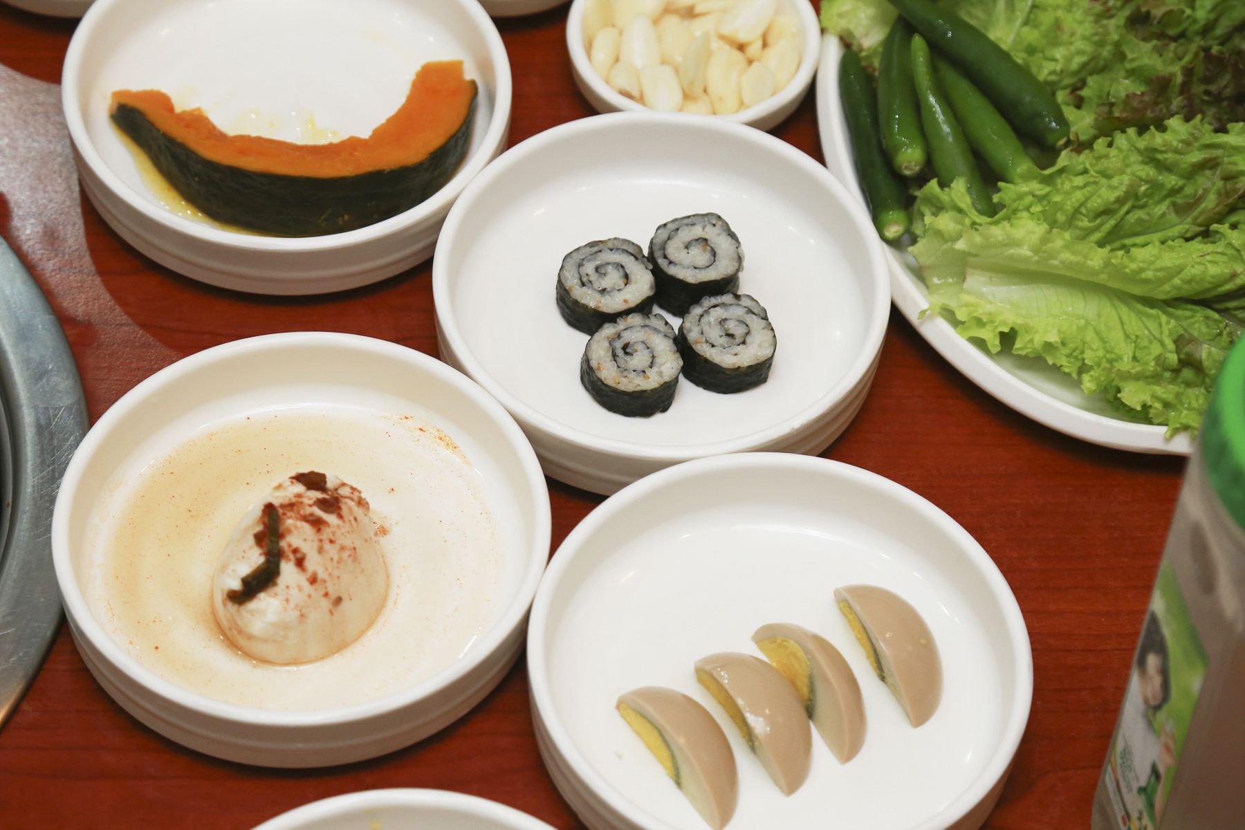 맛있는 한우,부드러운 돼지갈비,바삭한 삼겹살등 고기류를 주문하면 차려지는 기본한상입니다.
