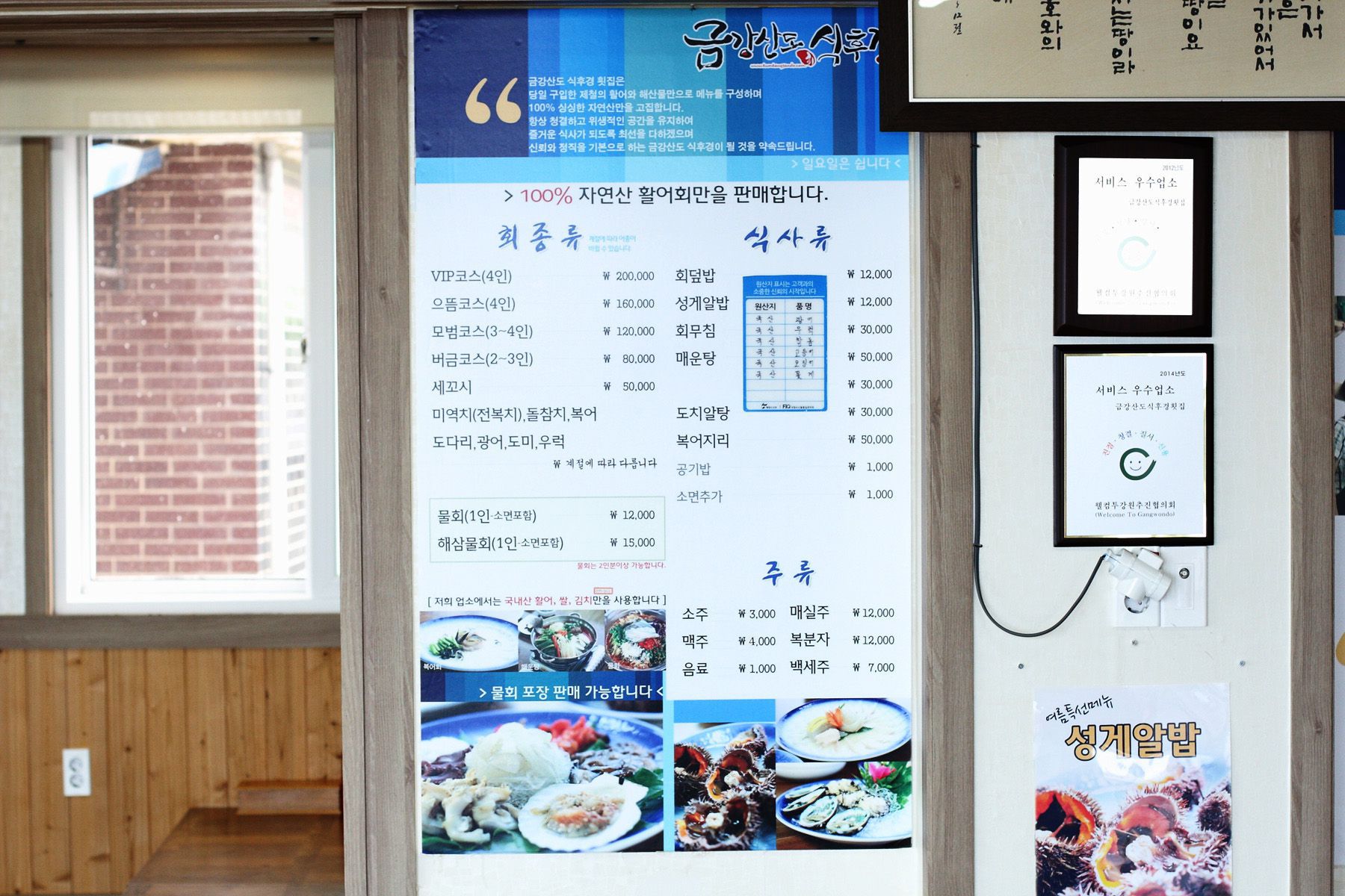 고성물회맛집으로 생생정보통에서도 방영된 이곳은 고성을 대표하는 맛집이자 모범음식점으로 선정되었으며
