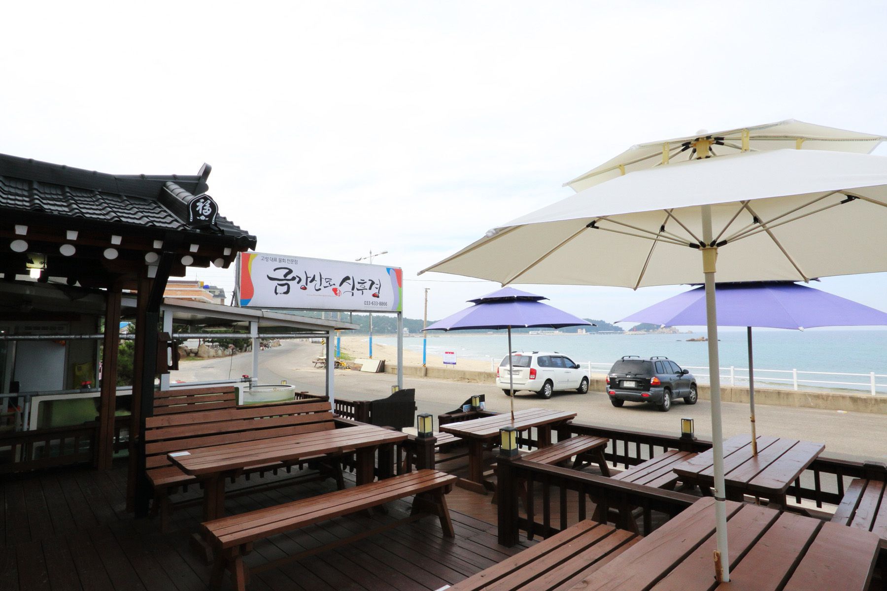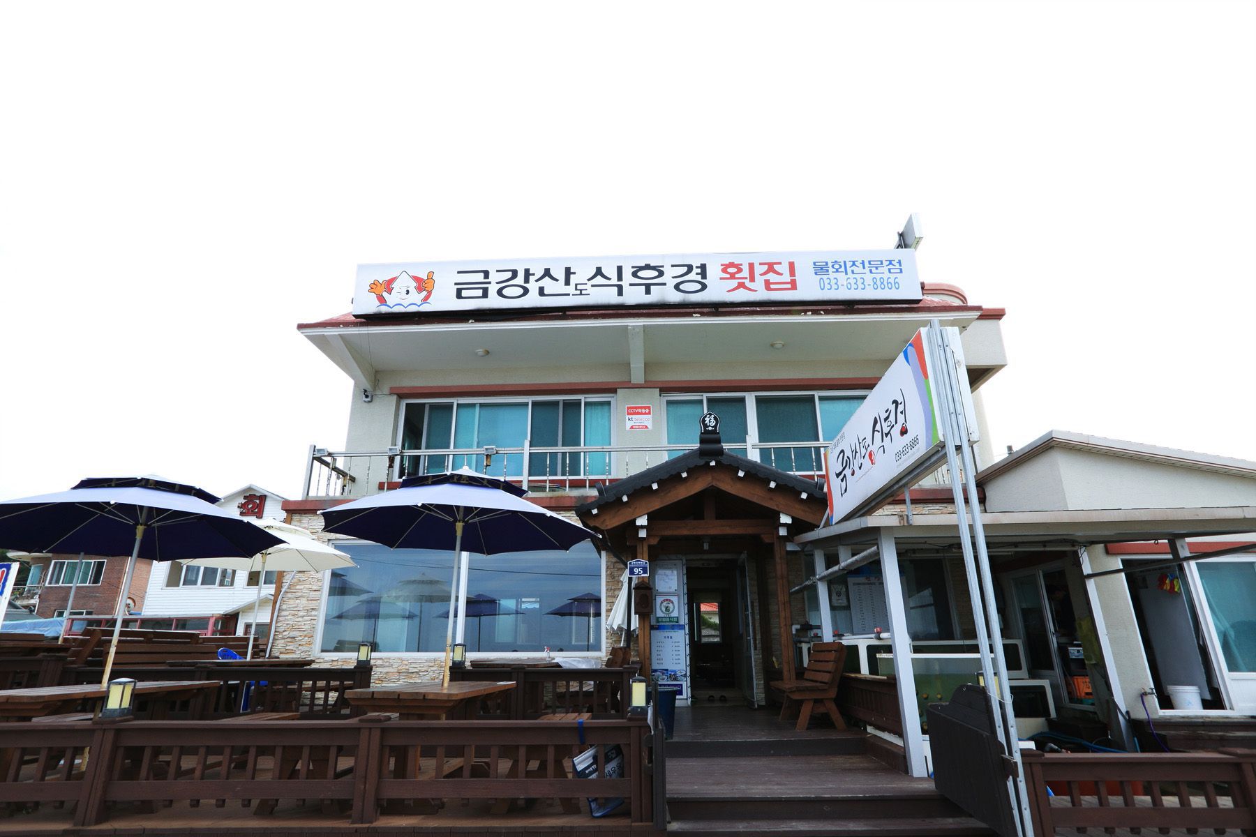 가게 바로앞 시원하게 펼쳐진 바다의 경치가 끝내주는 금강산도식후경횟집입니다.