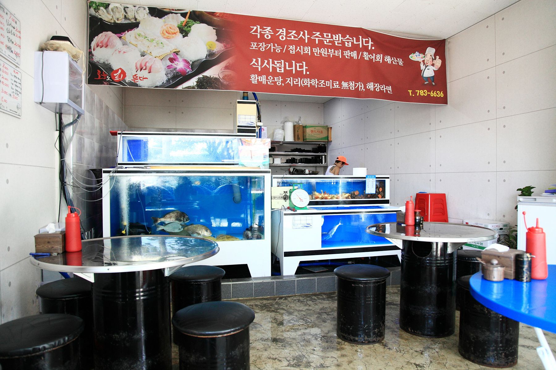 깔끔하게 관리되어 지고 있는 수족관에는 보기에도 신선한 생선들과 각종 해산물들이 가득하여 절로 입맛을 다시게 하며
