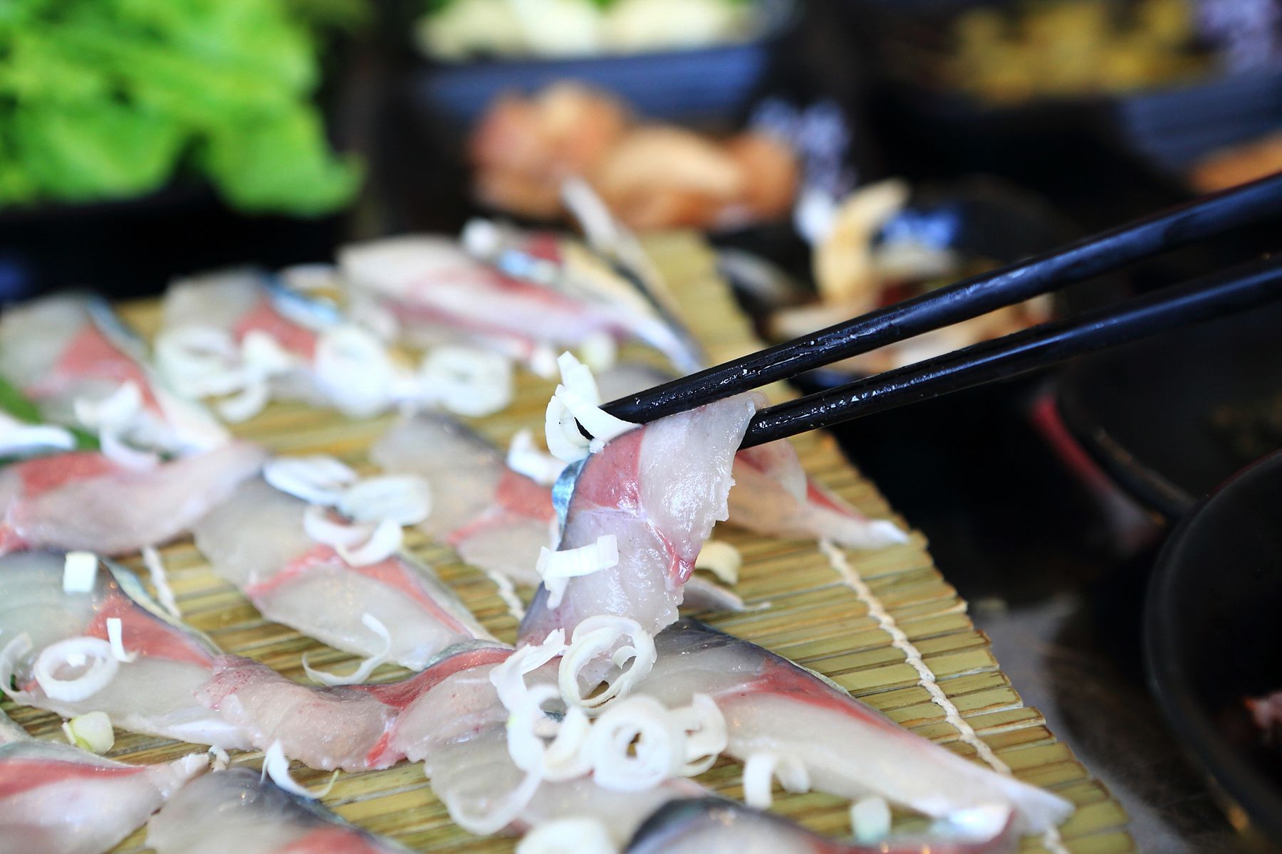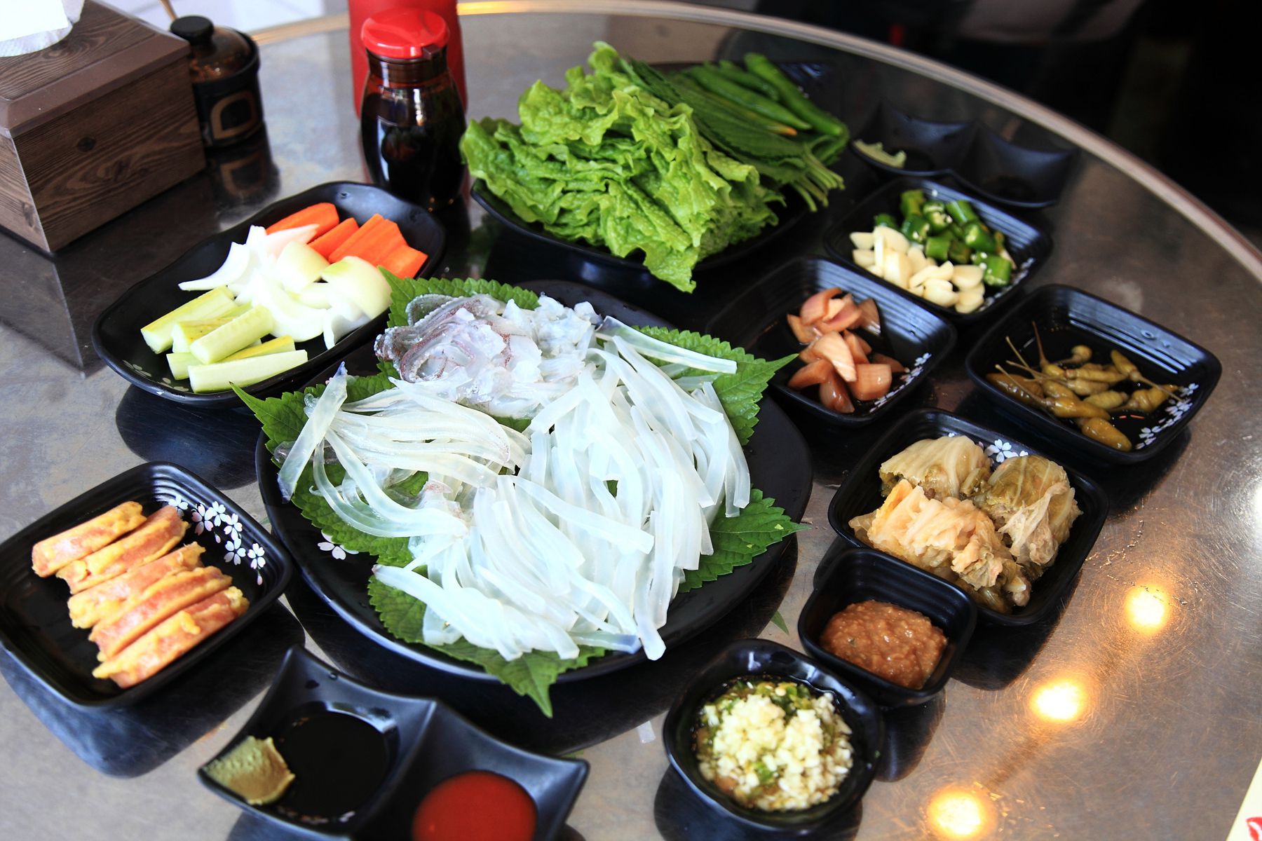 다양하게 준비되어 있는 메뉴들 중 한치회와 고등어회입니다.