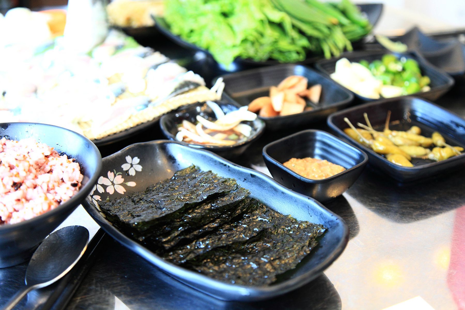 상차림에 같이 제공되어지는 기본찬들과 스키다시들은 깔끔하고 정갈하게 담겨나와 보기에도 좋으며 그 맛도 끝내주며
