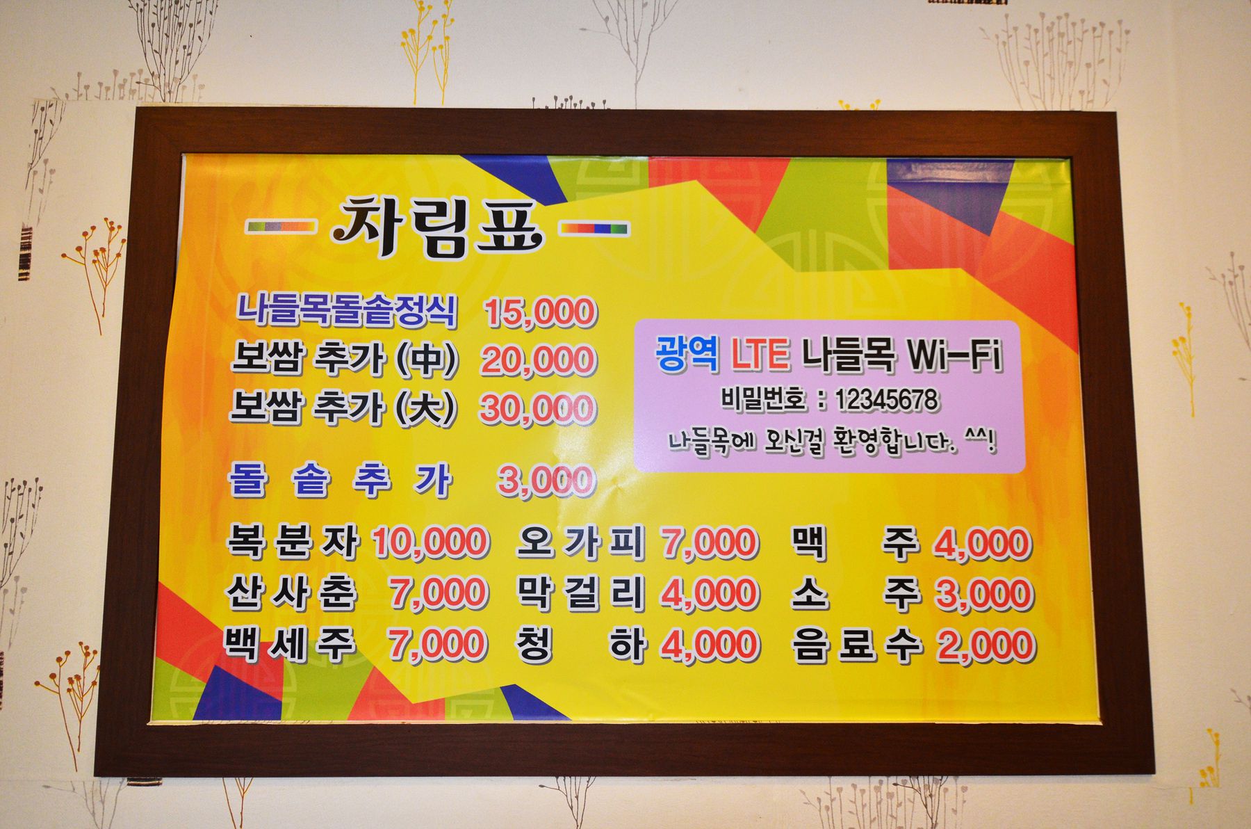 메뉴에 대해 자신이 있으시기때문에 이곳 식당의 메뉴는 단 한가지 '보쌈한정식'이 준비되어 있으며 보쌈은 중,대자로 추가 하실 수 있습니다.