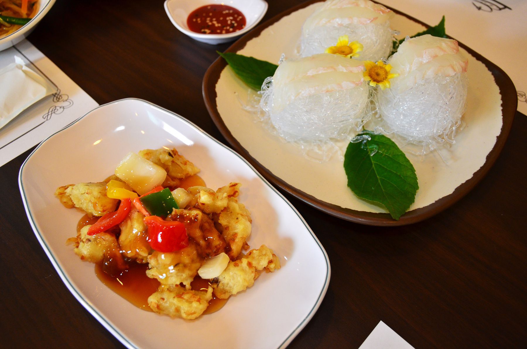 바삭하고 달콤한 탕수육과, 정식에 절대 빠지지않는 잡채, 달달한 샐러드와,깔끔하게 구워진 전과 새우요리는