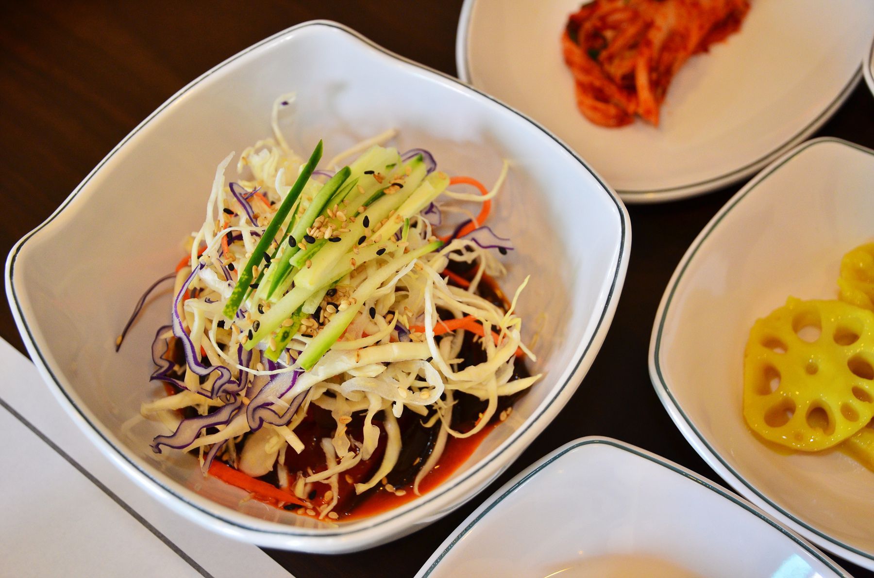 바삭한 기름진음식을 드셨다면 이번에는 입안을 깔끔하고 맛깔나게 만들어주는 반찬들을 맛보실 수 있습니다.