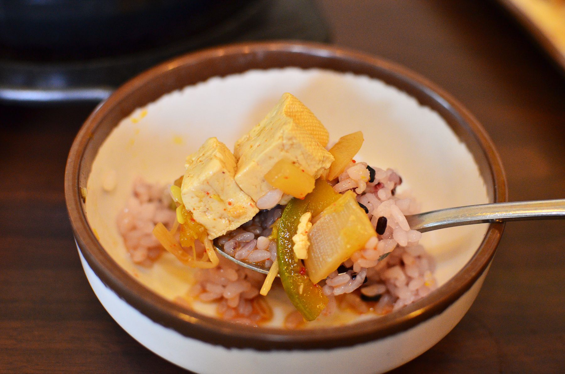 일반 공깃밥이 아닌 따끈하고 구수한 돌솥밥이 나오며 하얀쌀밥보다