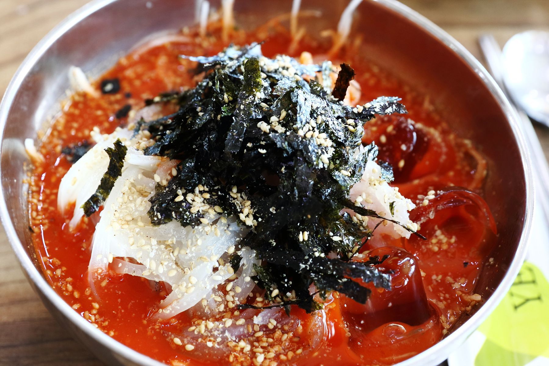 시원한 물회와는 또 다른 쫄깃한 식감과 아삭한 채소,입으로 계속해서 당기는 감칠맛까지 더해져 맛이 기가막히답니다.