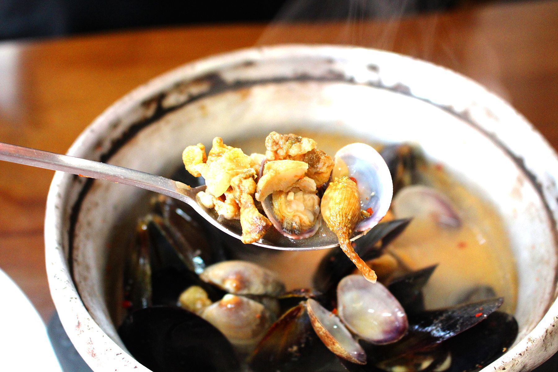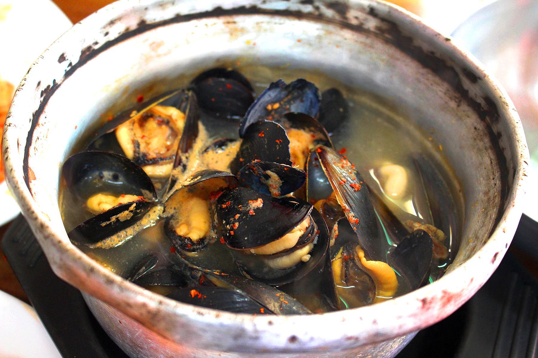 홍합과 다양한 재료가 들어간 탕은 재료를 아낌없이 사용하여 더욱 푸짐하고 깊은 맛을 내며