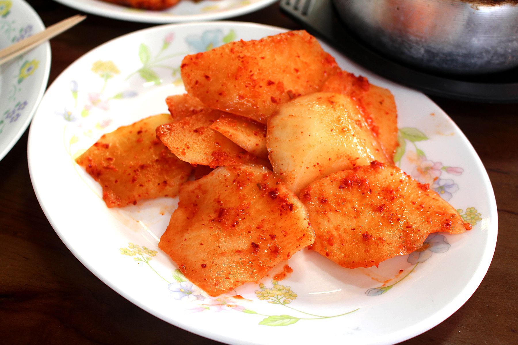 오랜 경력으로 쌓인 어머니의손맛에서 묻어 나는 무김치는 새콤하고 개운한맛이 일품이고