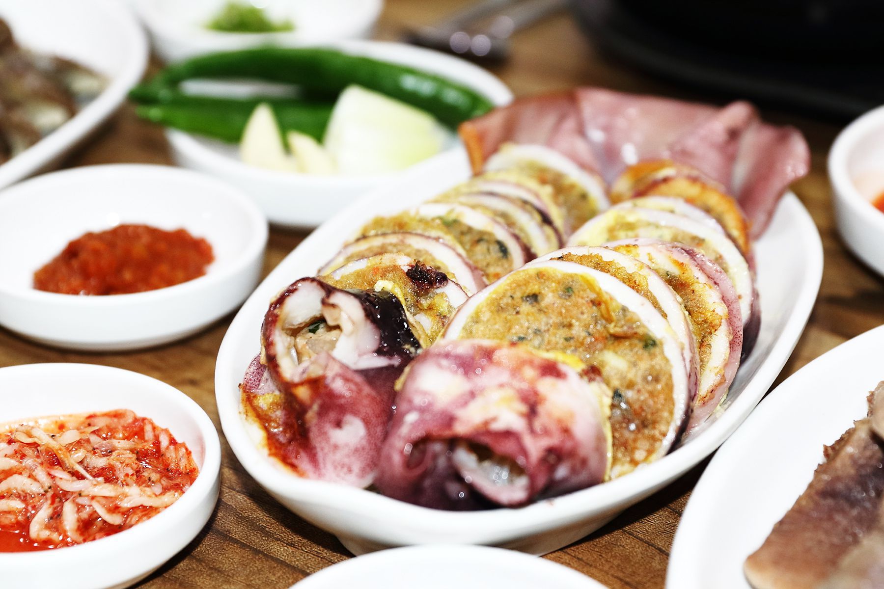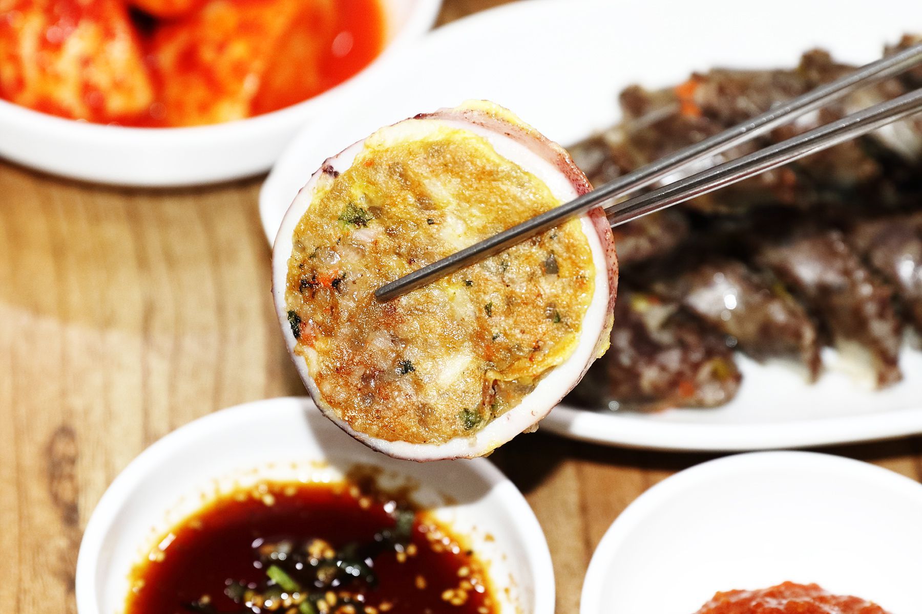 속초하면 아바이순대만큼이나 인기있는 속이 꽉찬 쫄깃함과 고소함을 자랑하는 오징어순대까지 모두 맛보실 수 있습니다.