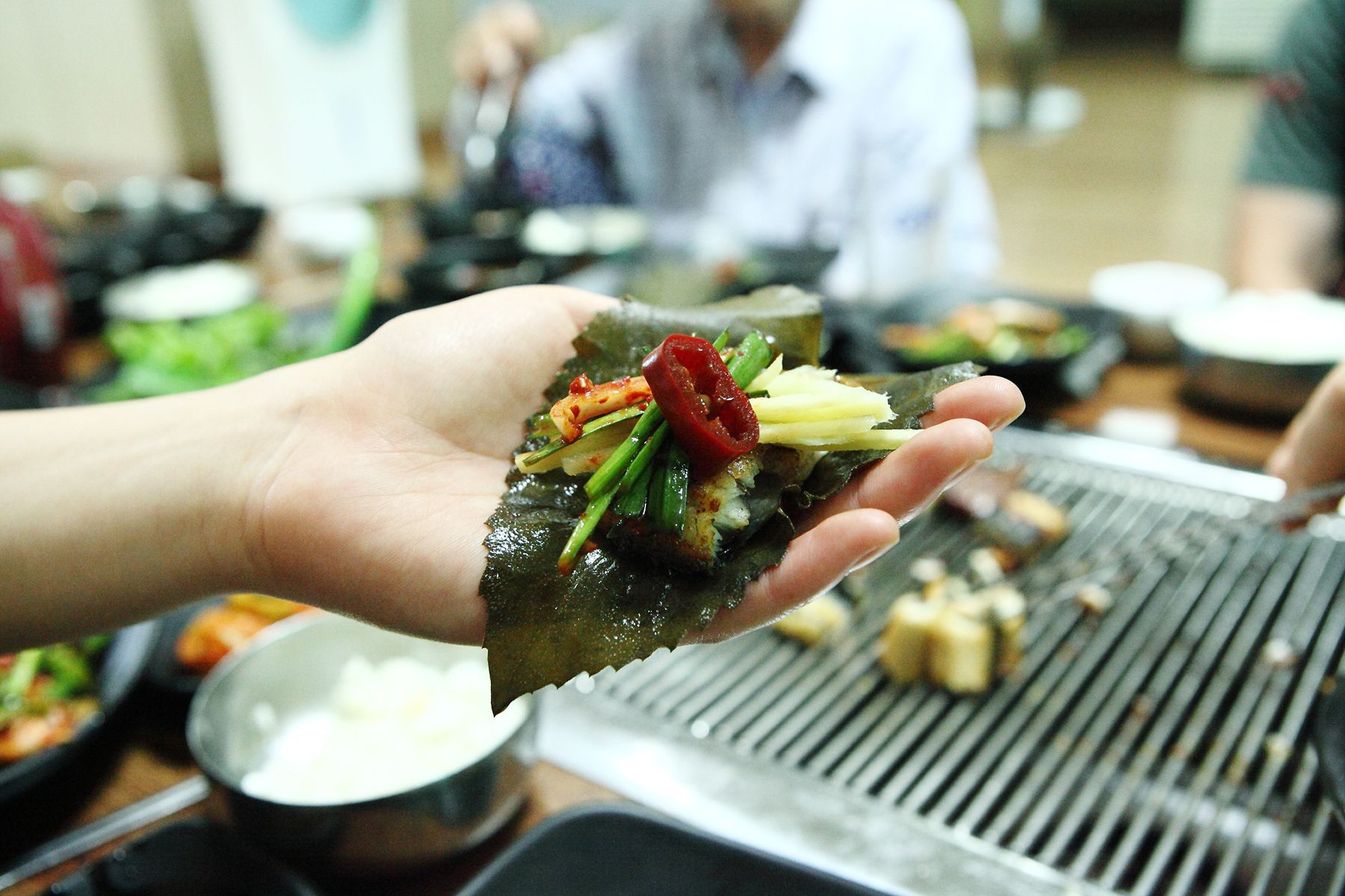 그냥 드셔도 너무 맛있는 장어는 푸짐하게 쌈을 싸서 드시면 더욱 맛있습니다.