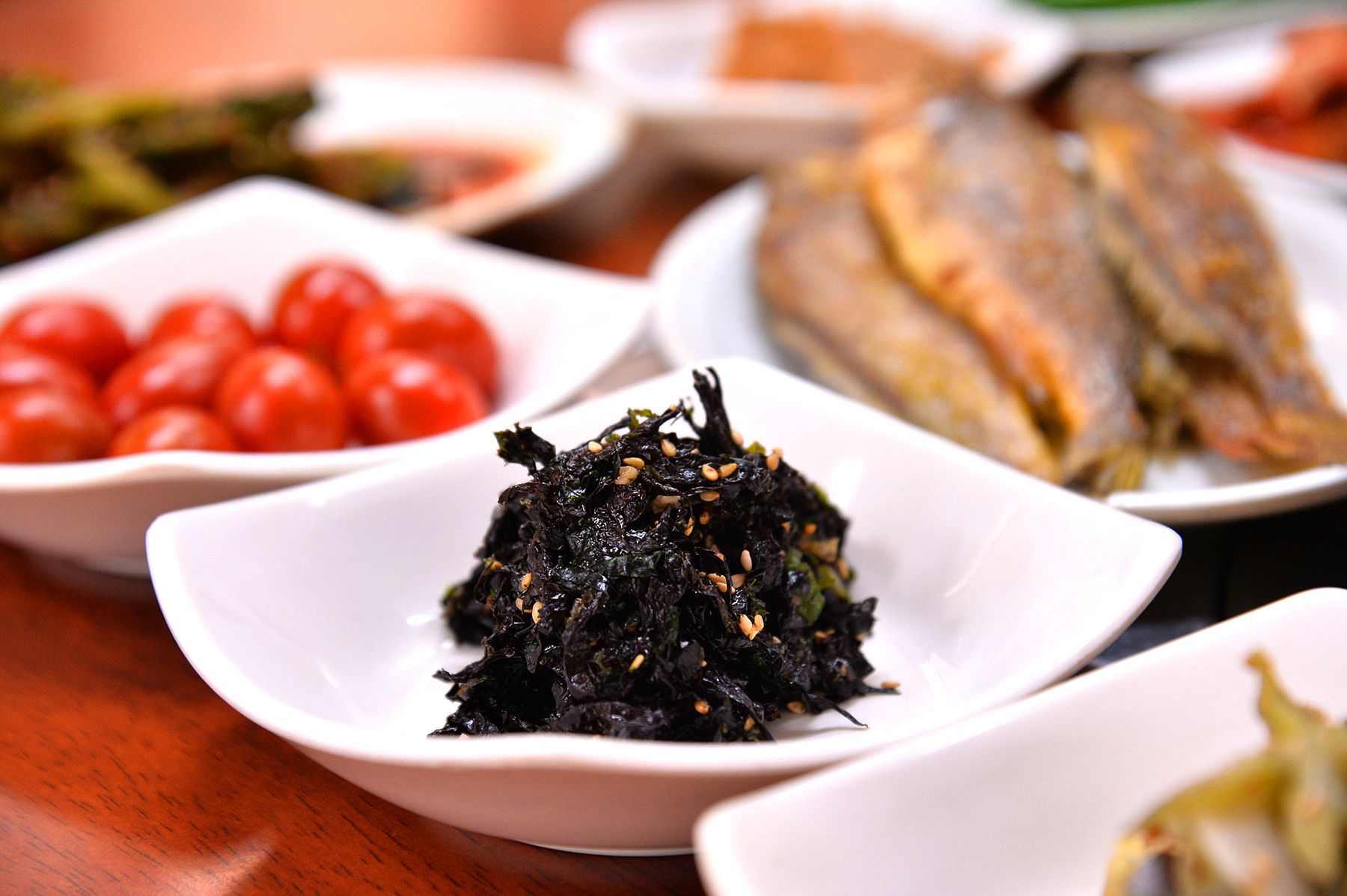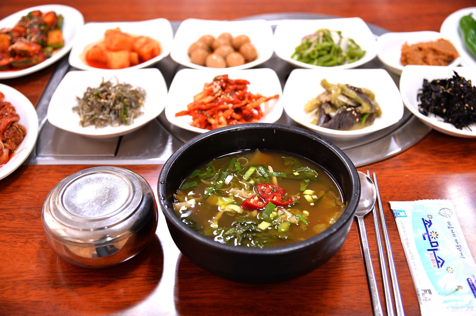 백반은 15가지가 넘는 밑반찬들과 함께 정갈하고 한상 가득 차려진답니다.