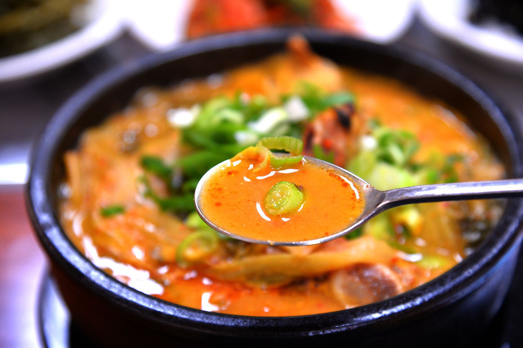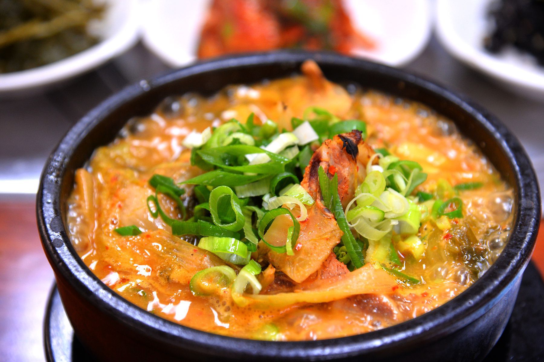 살 많은 뼈다귀와 파,우거지가 어우러져 깊은 맛이 나는 뼈다귀해장국은