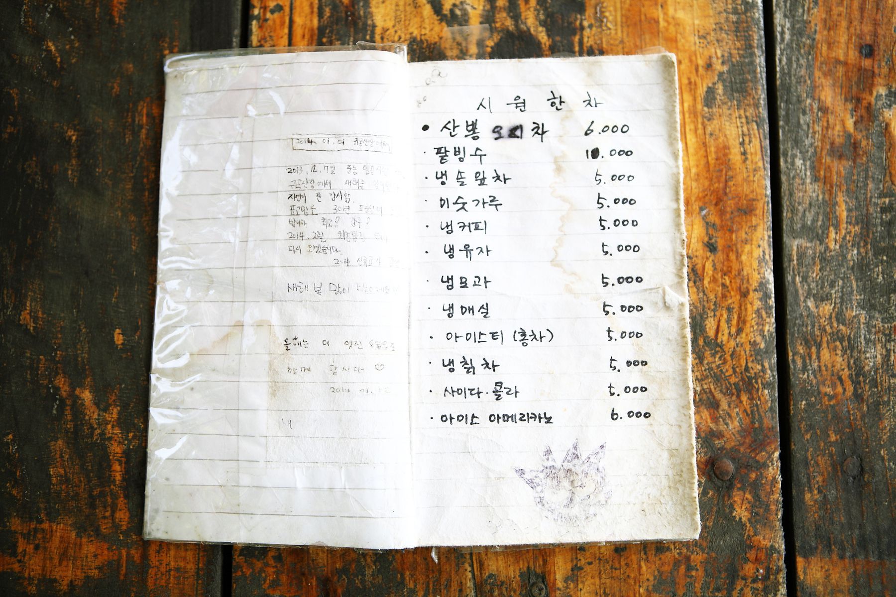 직접 손수 글자를 쓰셔서 메뉴판을 만드셨으며 식사류,차류,안주류등 다양하게 준비되어있습니다.