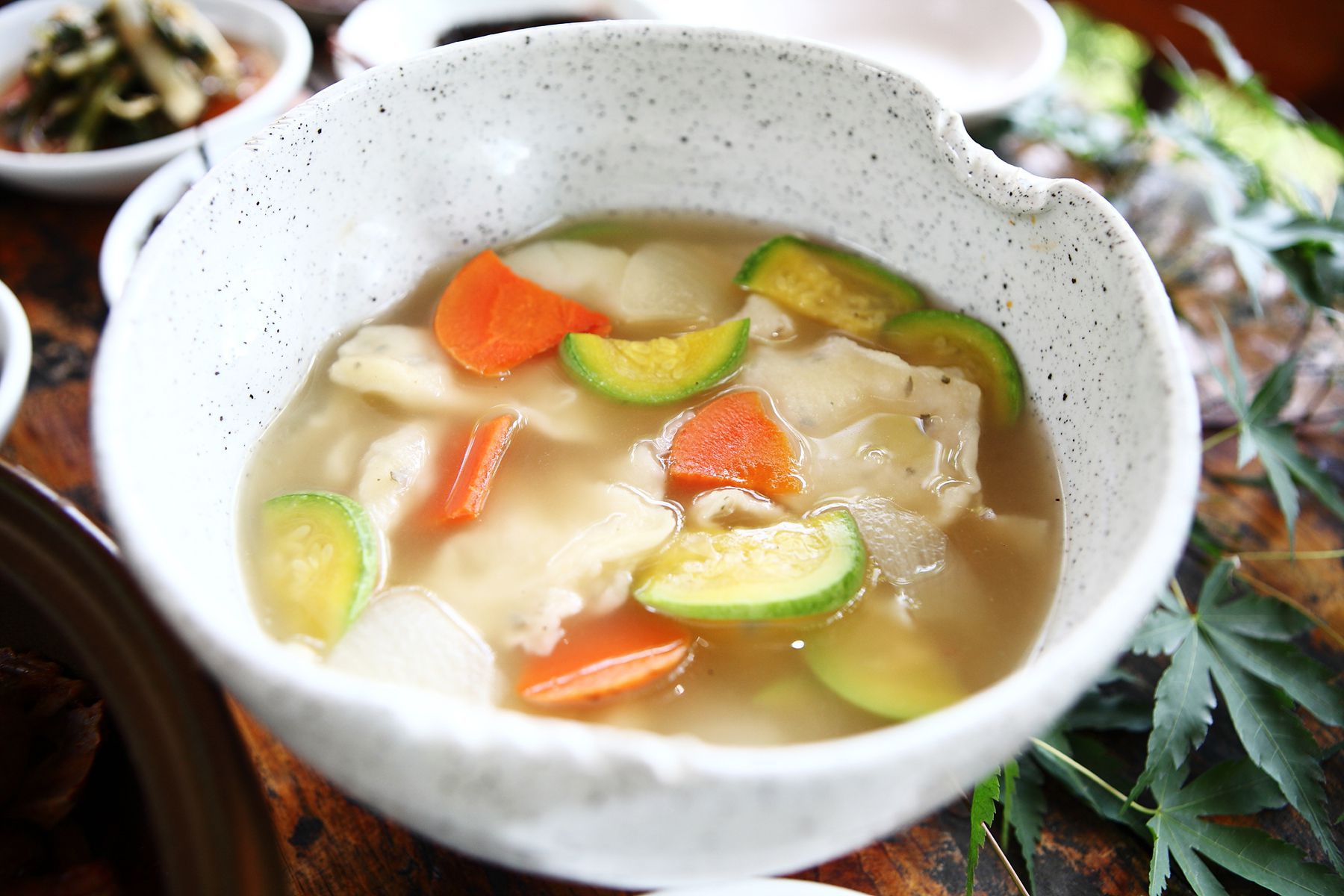 차잎을 넣어서 직접 반죽한 수제비는 쫄깃하면서도 차잎향이 가득 느껴져 풍미가 좋으며,
